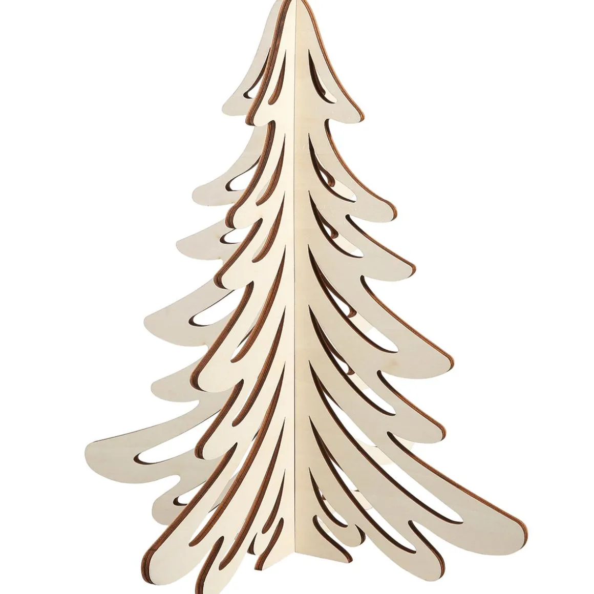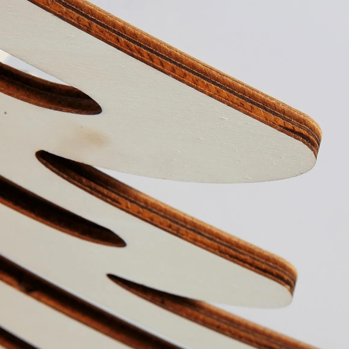 Dieser nachhaltige Holzweihnachtsbaum passt mit seinem reduzierten Design zu moderner sowie zu klassischer Weihnachtsdekoration und ist garantiert nadelfrei und dauerhaft einsetzbar. Zwei zusammensteckbare, gefräste Platten aus naturbelassenem Holz bilden eine filigrane dreidimensionale Kontur.