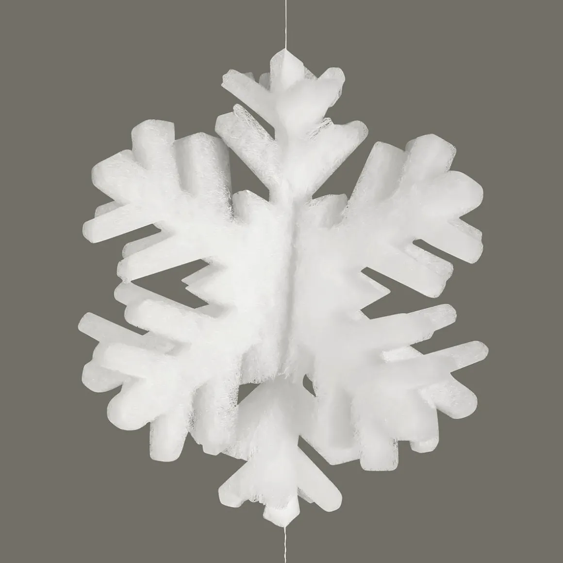 Die Schneeflockengirlande ist schwer entflammbar nach DIN:4102 B1 und somit bedenkenlos in öffentlichen Einrichtungen anzubringen.