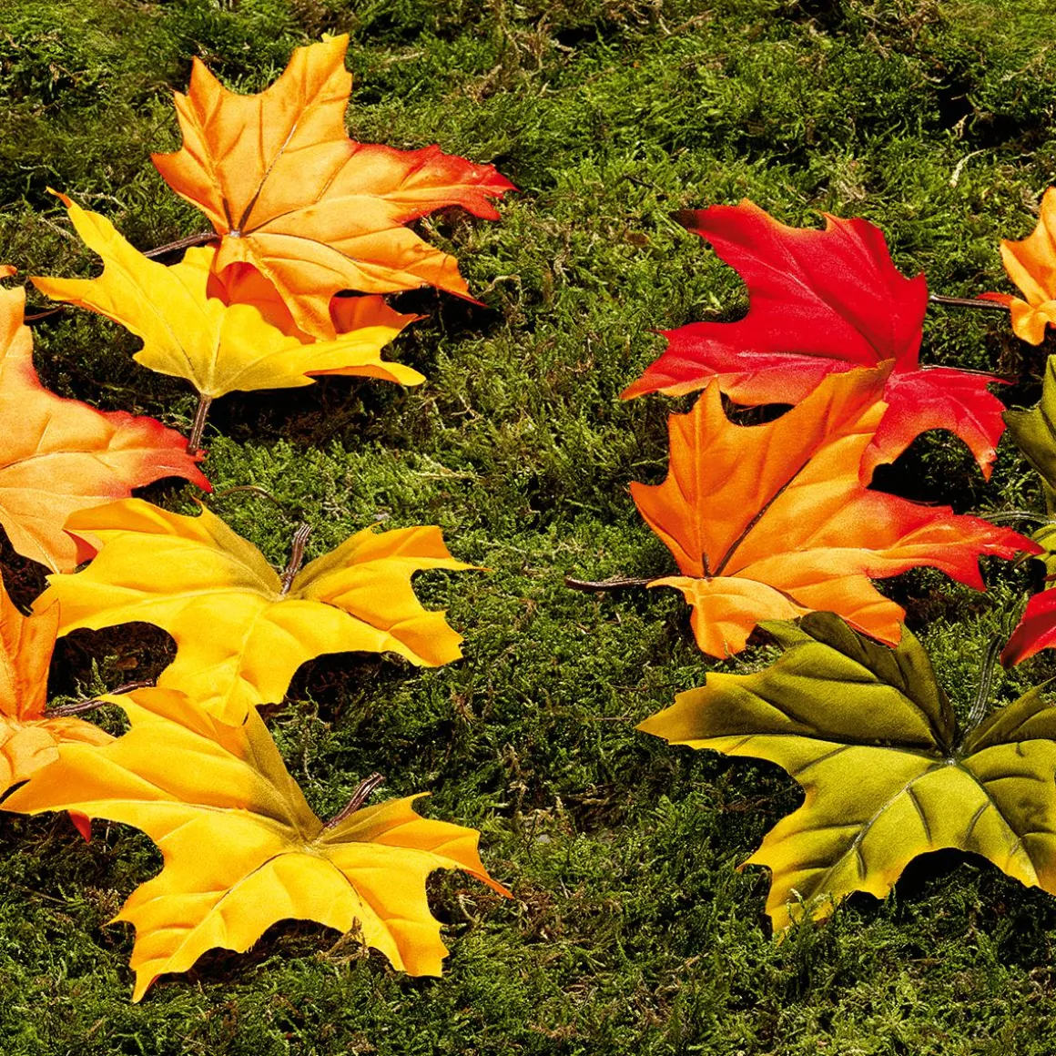 Diese künstlichen Herbstblätter zum Streuen überzeugen durch ihre herbstliche Leuchtkraft und Langlebigkeit und sind von ihren natürlichen Vorbildern optisch kaum zu unterscheiden. Hervorragend nachgebildet und von sehr guter Qualität, behalten diese Dekoblätter für viele Jahre Form und Farbe. Hochwertiges Textilmaterial und Blattadern aus Kunststoff. Preis per Pack à 30 Stück.