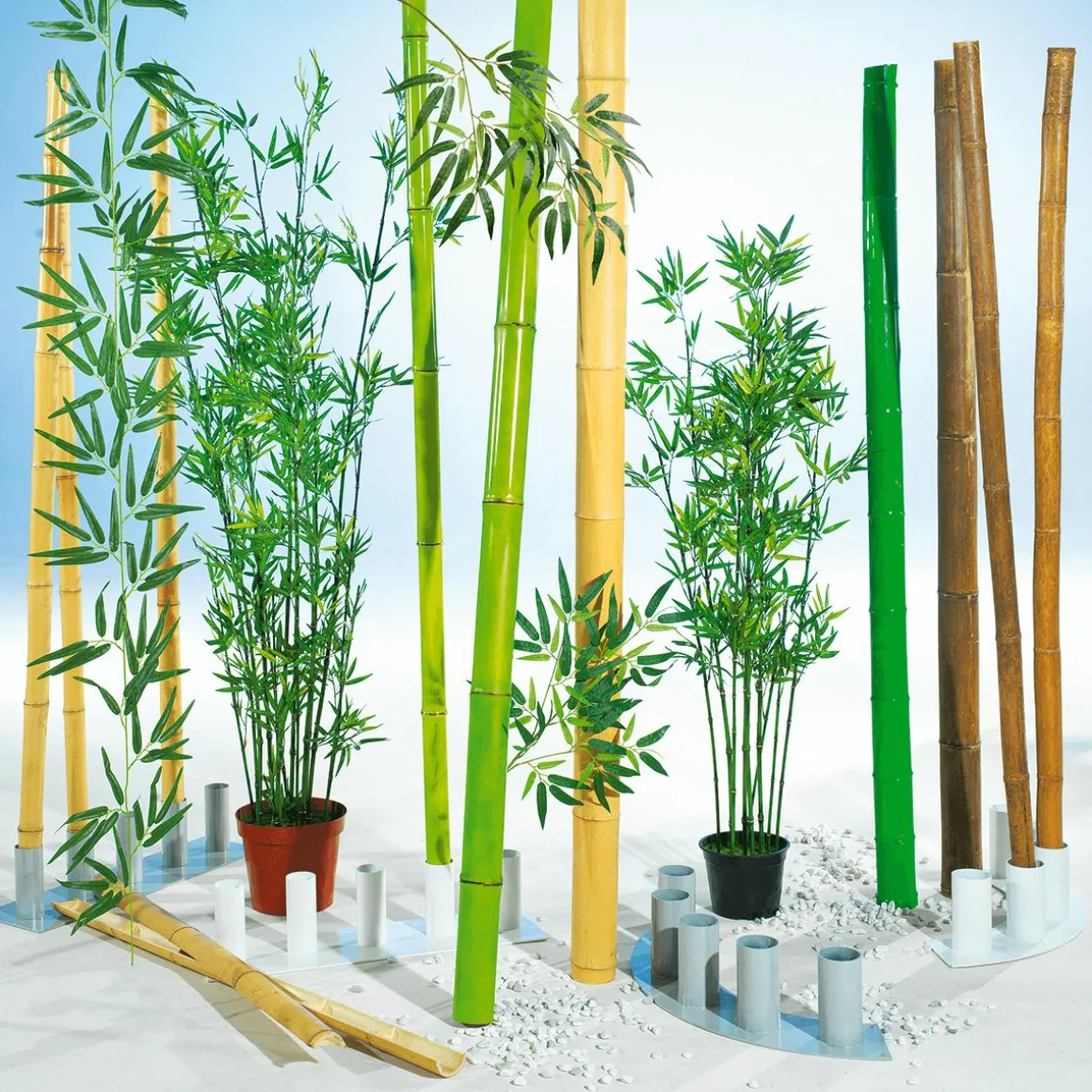 Echtes, naturbelassenes Bambusrohr für asiatisches Flair, Bambus ist ein Naturprodukt, Abweichungen in Durchmesser und Farbe sind normal, Lieferung erfolgt ohne Standplatte, Preis per Pack à 3 Stück.