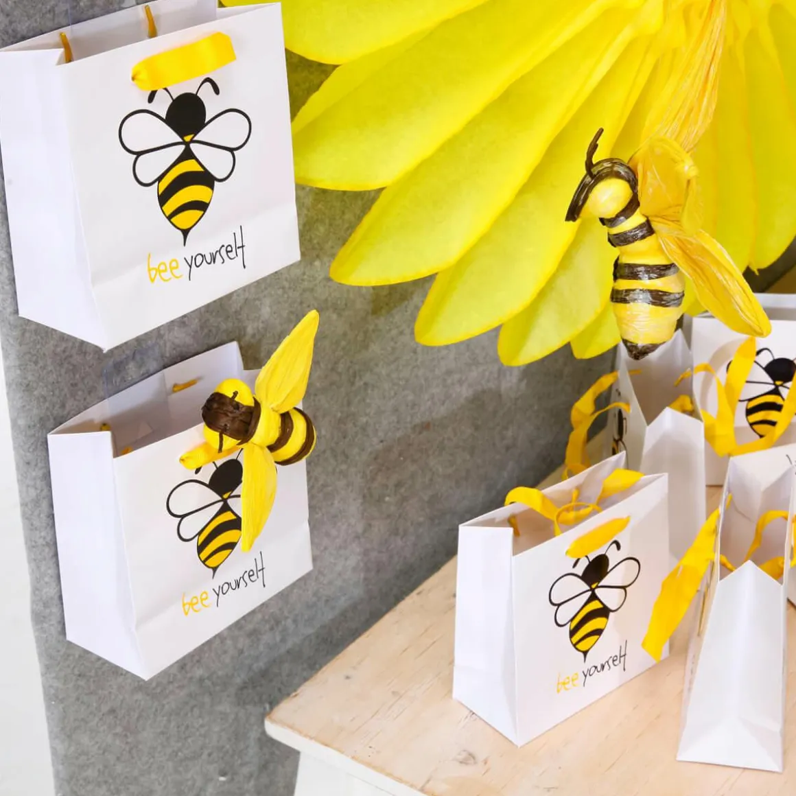 Summ, summ, summ – Bienchen summ herum! An diesen Insekten führt derzeit kaum ein Weg vorbei. Bienen sind in der Umweltpolitik, den Medien oder in Heim und Garten in aller Munde. Mit unserer farbenfroher Bienendeko greifen Sie den Bienen-Trend auf und machen auf unsere fleißigen Honigbienen aufmerksam, ob im Schaufenster, als Dekoration in Schule und Kindergarten sowie für eine Bienen-Motto-Party oder Kindergeburtstag. Hartschaumkörber mit Krepppapier ummantelt, Flügel formbar, Preis per 5tlg. Set.