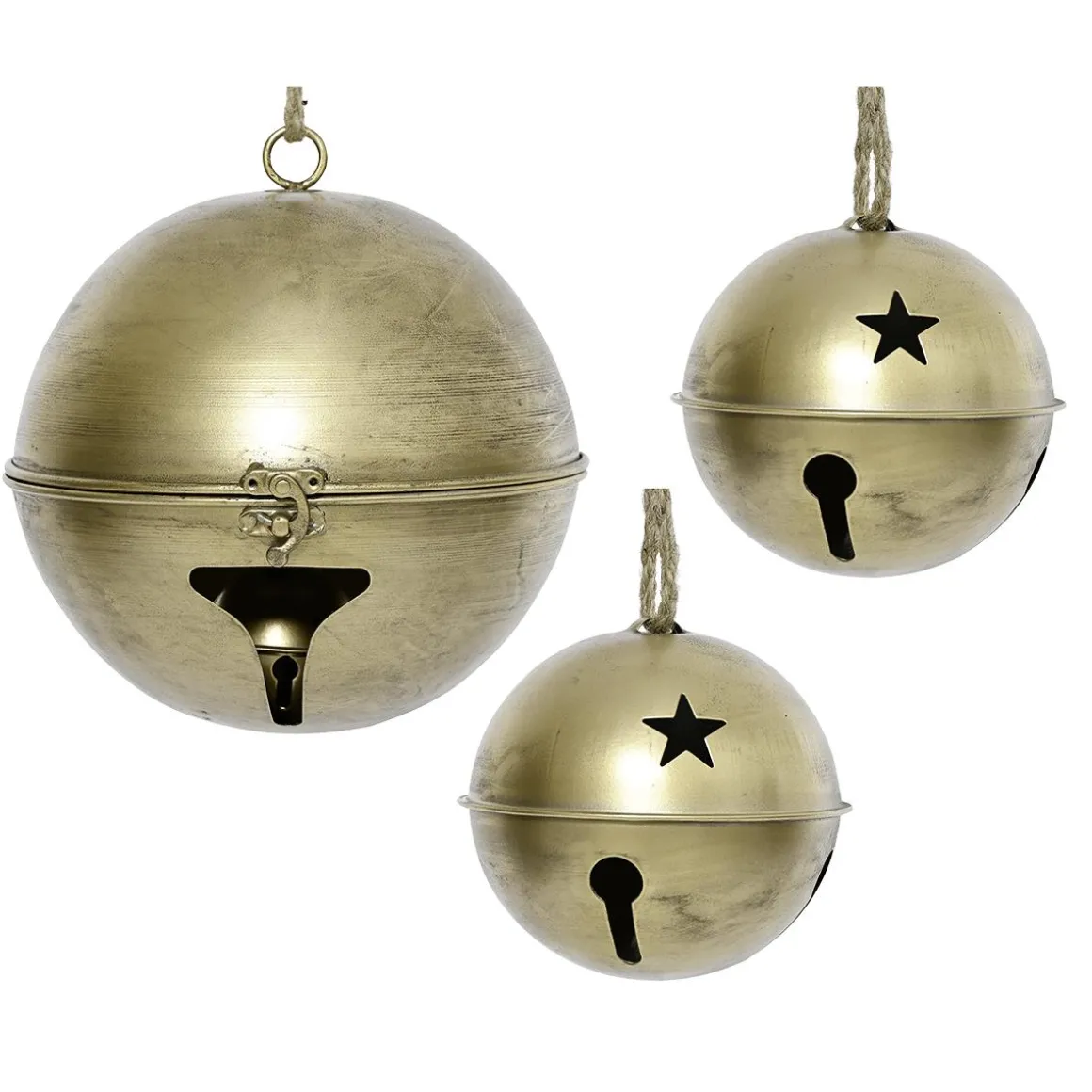 Hergestellt aus strapazierfähigem Eisen, strahlt dieses Glockenset nicht nur Eleganz aus, sondern garantiert auch Langlebigkeit und Beständigkeit. Mit einem Durchmesser von 14, 20 und 24,5 cm ist dieses Glockenset ideal, um in Ihren Räumen aufgehangen oder platziert zu werden.