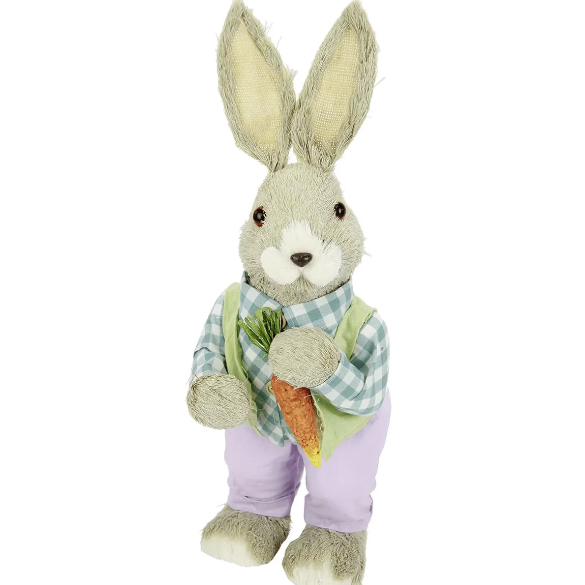 Wunderschön verarbeitete Hasen aus Sisal, erhältlich als Männchen und Weibchen, 48 cm hoch. Die Hasen sind aus umweltfreundlichem Stroh gefertigt und haben sehr niedliche Outfits, die farblich aufeinander abgestimmt sind in lila und blau. Besonders als Osterdekoration sind die Deko-Hasen ein echter Hingucker. Auch als Ganzjahresdekoration können Sie die Hasen wunderbar im Garten, im Hausflur oder in Ihren Räumen und Schaufenstern platzieren.