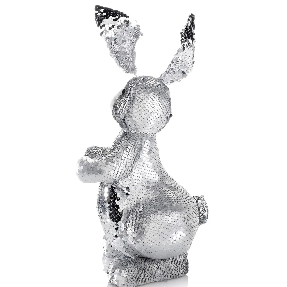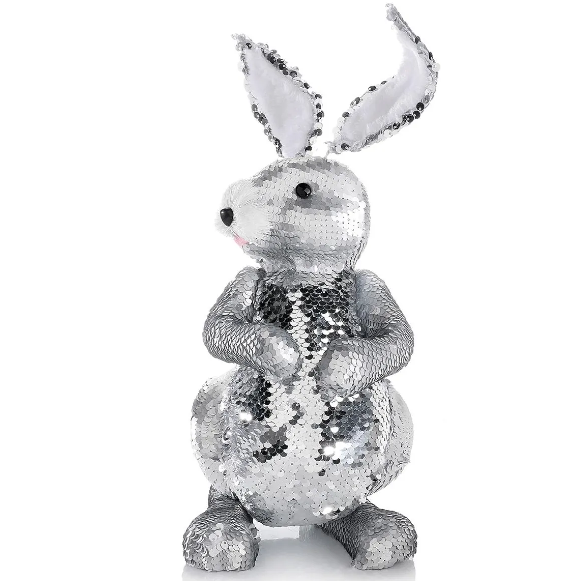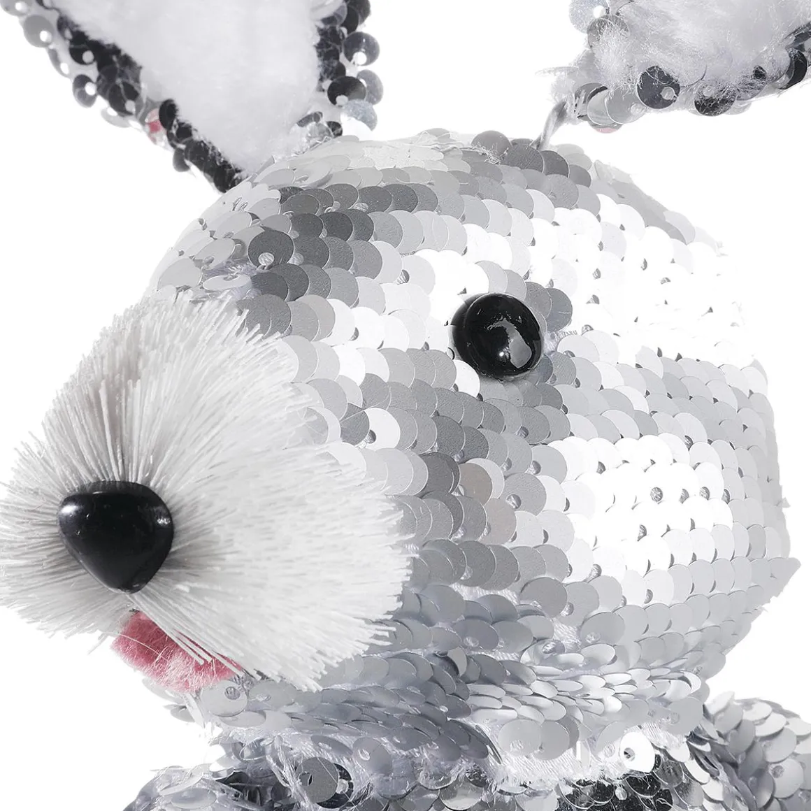 Deko-Oster-Hase Mit Wendepailletten Silber, 35 Cm