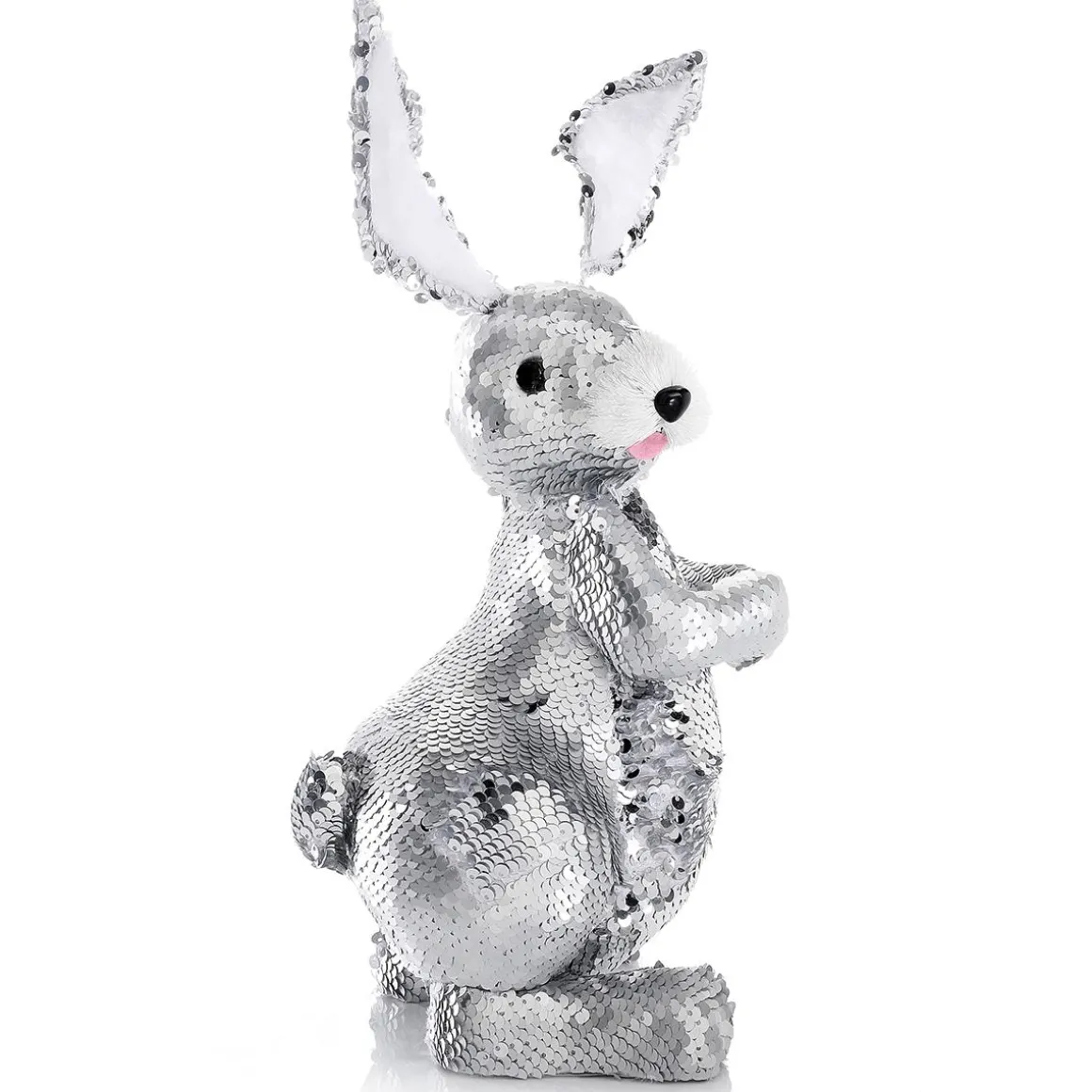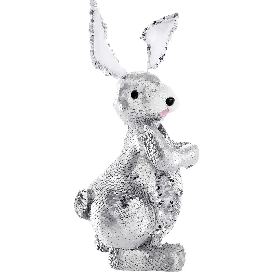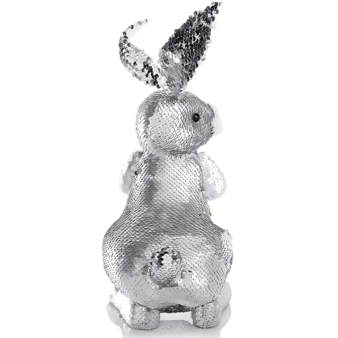 Deko-Oster-Hase Mit Wendepailletten Silber, 35 Cm