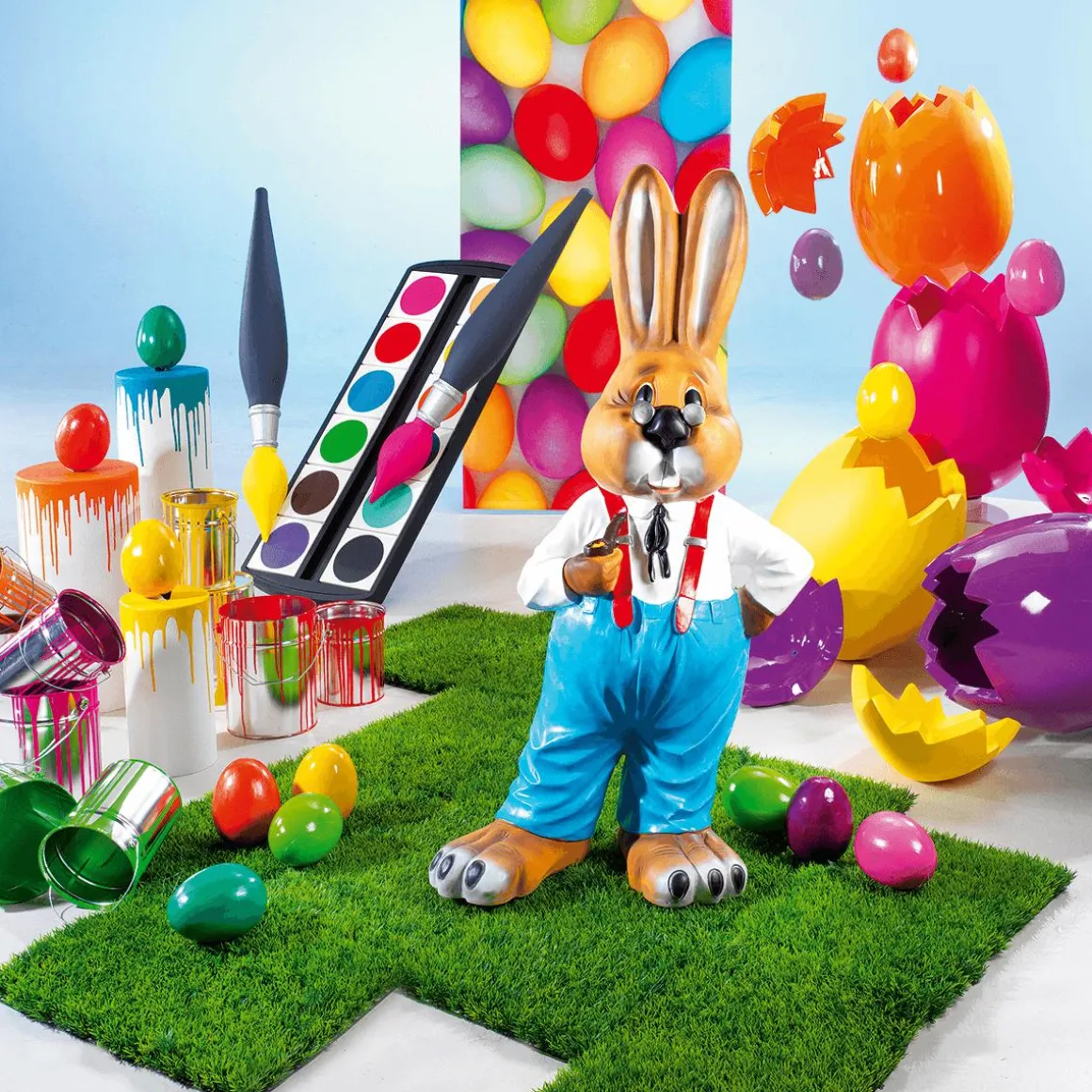 Ob geschlossen oder offen – das Riesenei mit separatem Bruchstück eignet sich sowohl zum Befüllen als auch als Blickfang in Ihrer Osterdeko. Die robuste Fertigung aus 3 cm starkem, schlagfestem und schwer entflammbarem Fiberglas sowie die hochwertige Lackierung ermöglichen den Einsatz im Außenbereich. Preis per Stück.
