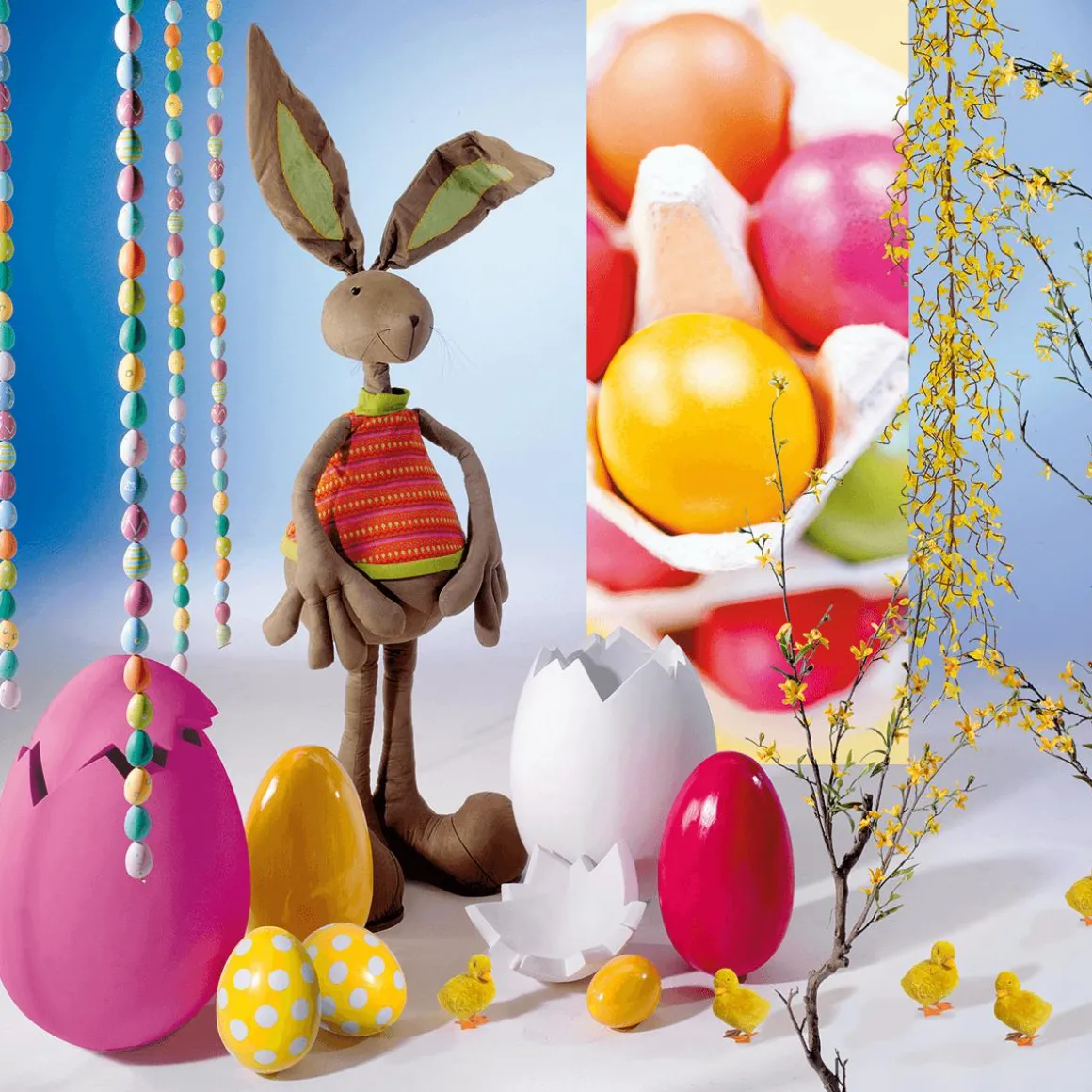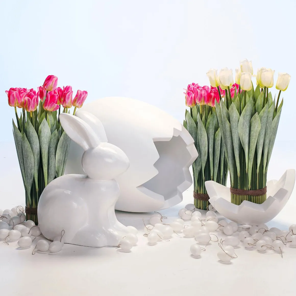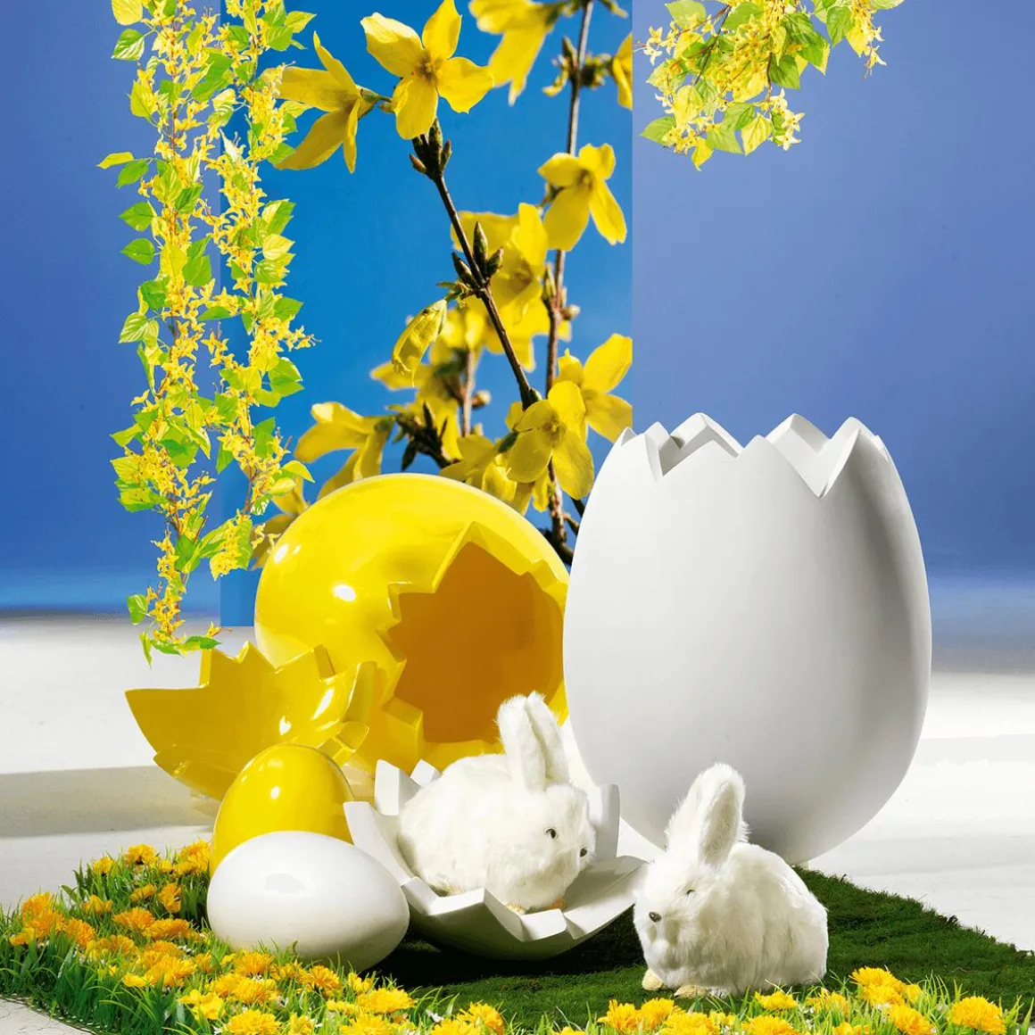 Ob geschlossen oder offen – das Riesenei mit separatem Bruchstück eignet sich sowohl zum Befüllen als auch als Blickfang in Ihrer Osterdeko. Die robuste Fertigung aus 3 cm starkem, schlagfestem und schwer entflammbarem Fiberglas sowie die hochwertige Lackierung ermöglichen den Einsatz im Außenbereich. Preis per Stück.