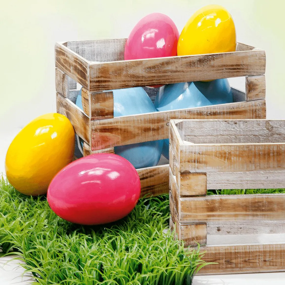 Gefärbt, bemalt oder beklebt – zur klassischen Osterdekoration gehören bunte Ostereier einfach dazu! Mit unseren bunten Deko-Eiern sparen Sie Zeit und sorgen im Frühling für eine schnelle, bunte Dekoration. Kreativen Gestaltungsideen können Sie dabei freien Lauf lassen. Im Pflanzenkübel, in einem großen Korb oder als Tischdeko – große, bunte Ostereier sorgen auf jeden Fall überall für gute Laune. Das Deko-Ei besteht aus beschichtetem, lackiertem Hartschaum.