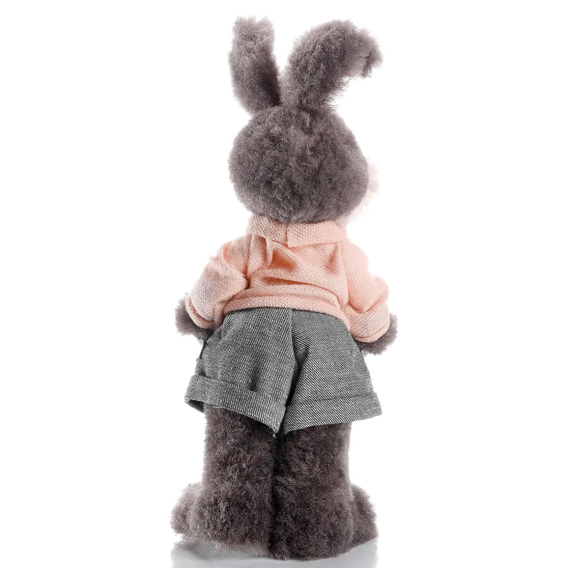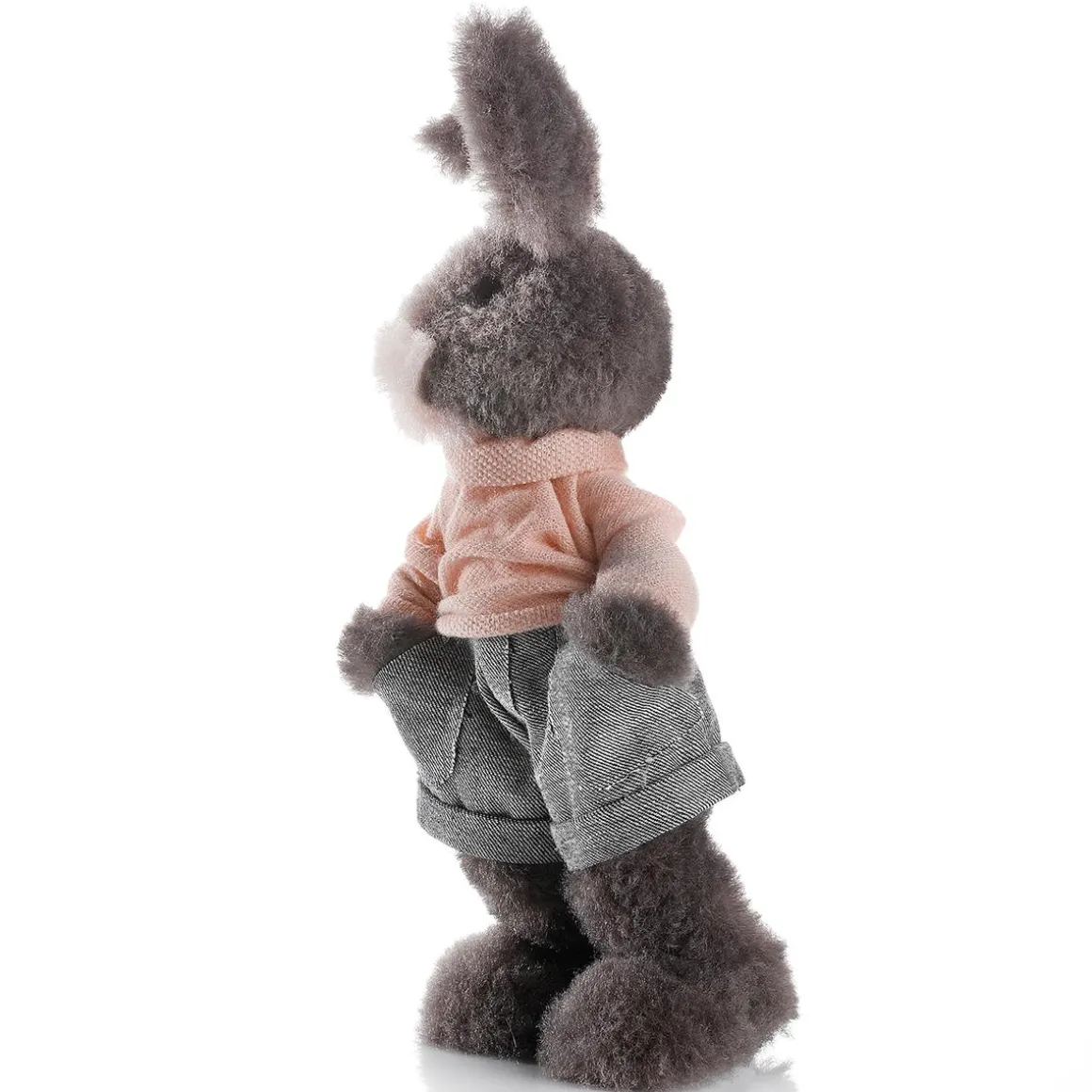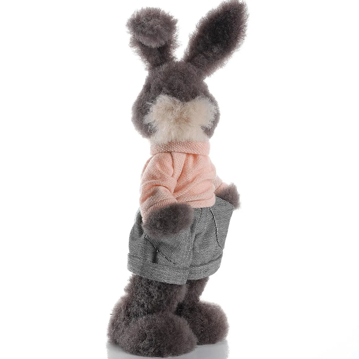 Deko-Osterhase aus Hartschaumkern und weichem Plüsch, 40 cm hoch, grau, mit liebevoll gestalteter Strickkleidung. Preis per Stück