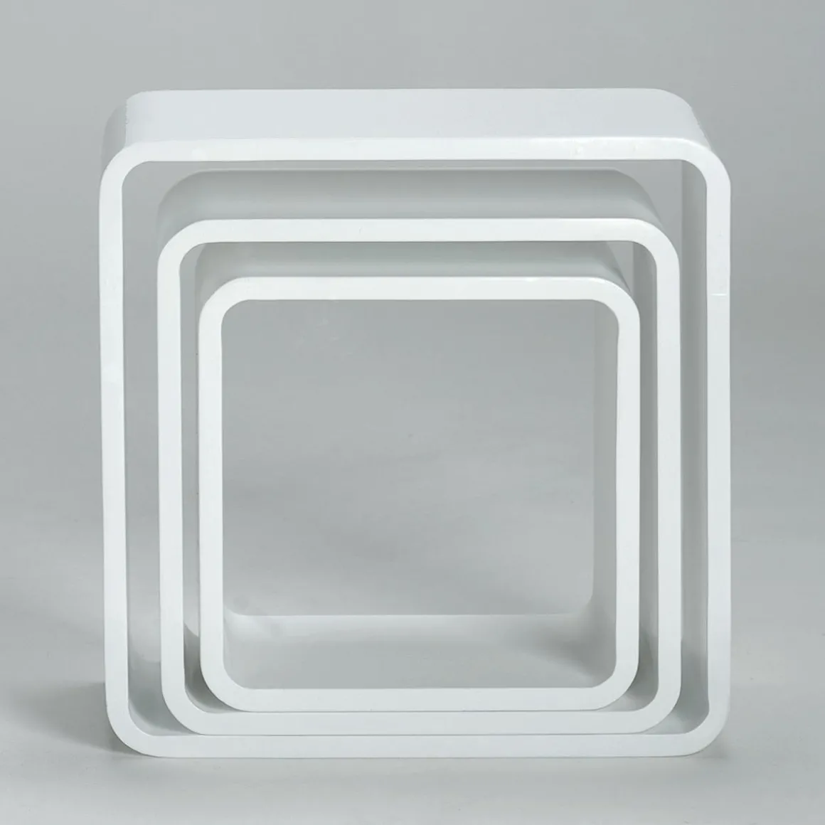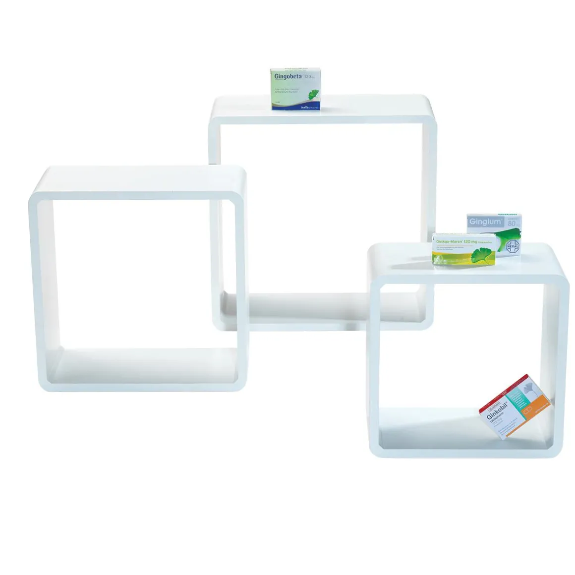 Attraktives und zeitgemäßes Retro-Design mit abgerundeten Kanten trifft auf nützlichen Stauraum – das praktische Regal-Set enthält drei Größen zum Aufbewahren und Ausstellen, wodurch sich allerlei Dekorationsideen umsetzen lassen. Aus 2 cm starkem MDF mit glänzendem Lack gefertigt, bieten die Cubes eine hohe Belastbarkeit. Dynamisch und kreativ aufeinander gestapelt oder einzeln als kleiner Beistelltisch sind die Würfelregale ein moderner Eyecatcher in jedem Raum. Preis per 3tlg. Satz.