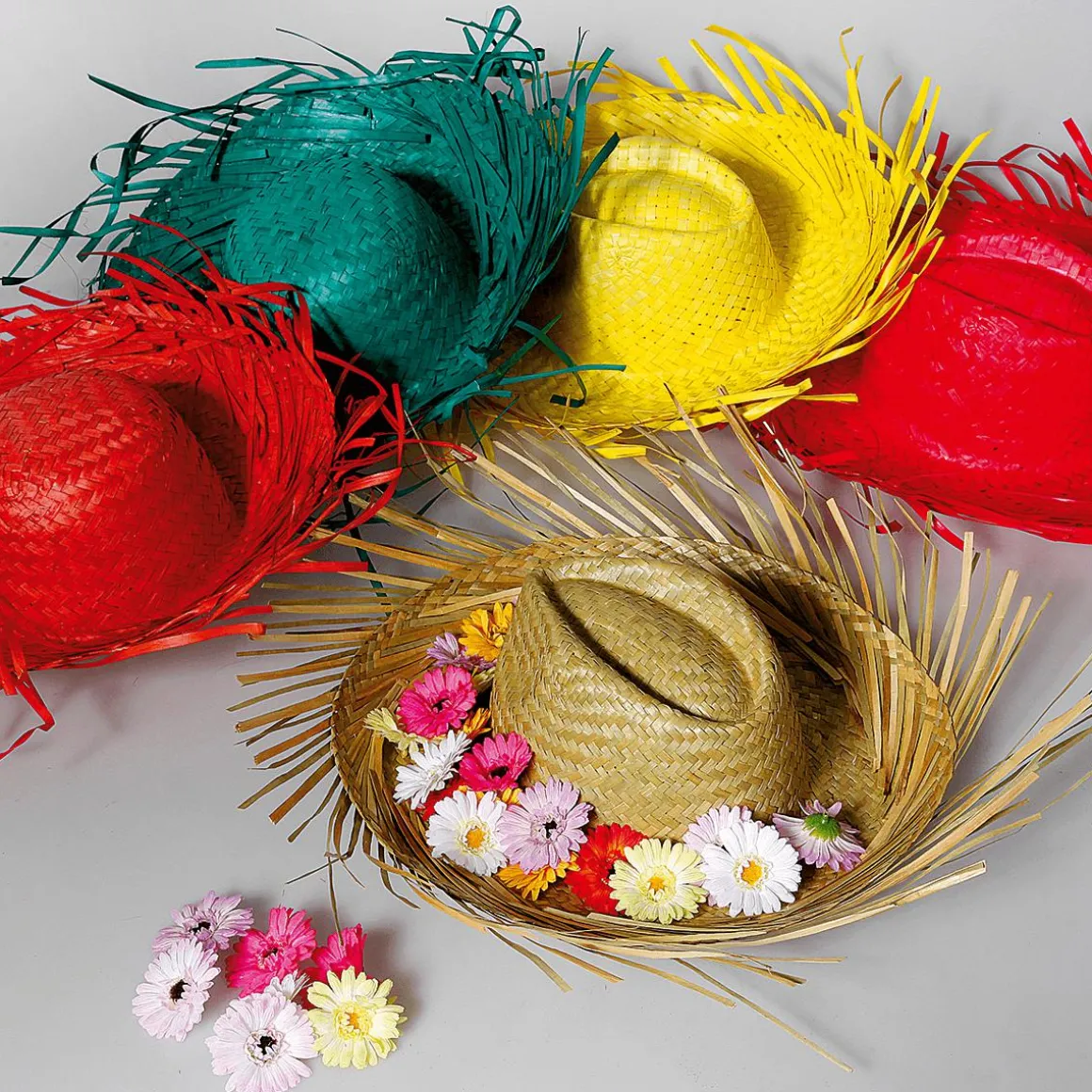 Dieser Hut mit langen Stroh-Fransen am Hutrand ist ein tolles Accessoires für eine Hawaiiparty, Strandparty, Sommerfest, Karneval/Fasching oder Mottoparty. 18,5 cm Ø innen. Preis per Stück.