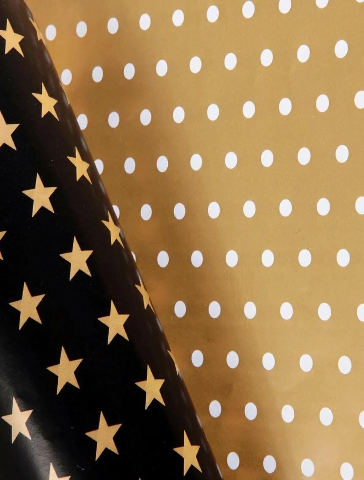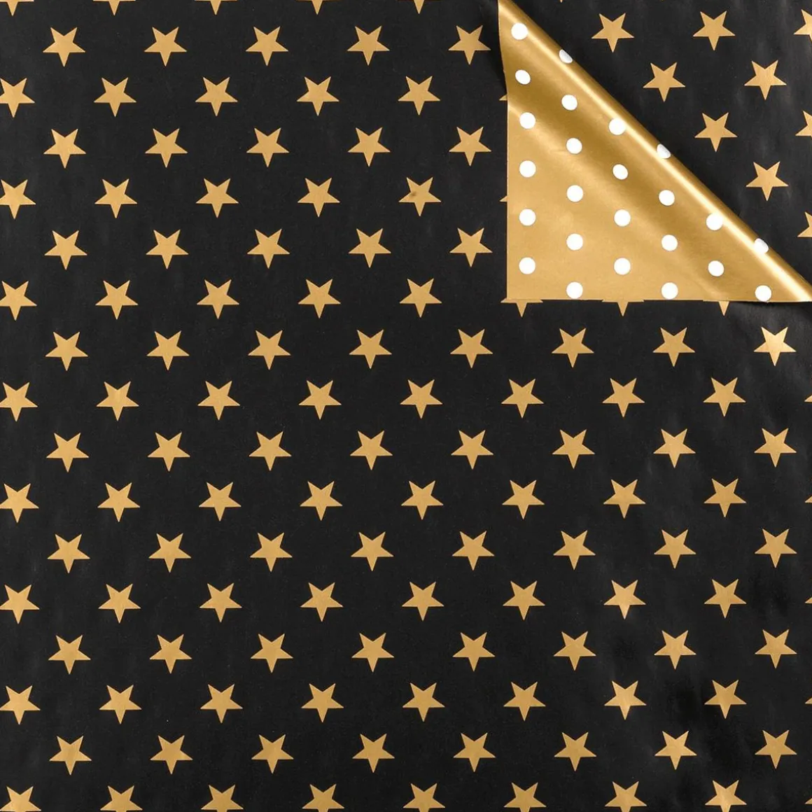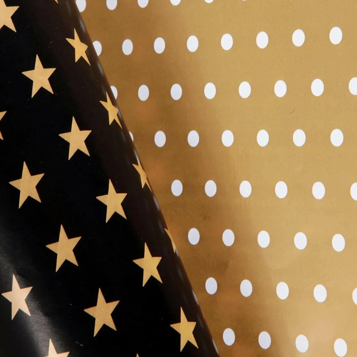 Doppelseitiges Weihnachts-Geschenkpapier In Schwarz & Gold Mit Sternen & Punkten – 50 M Geschenkpapier-Rolle