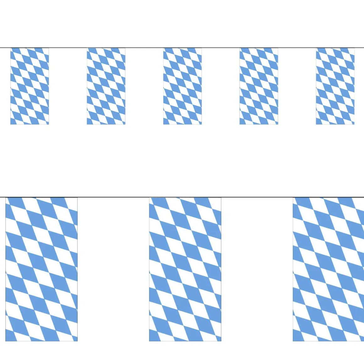 Tolle schwer entflammbare Fahnenkette im klassischen blau weiß, 400 cm lang, mit die Sie im Handumdrehen eine tolle Oktoberfestdeko zaubern.