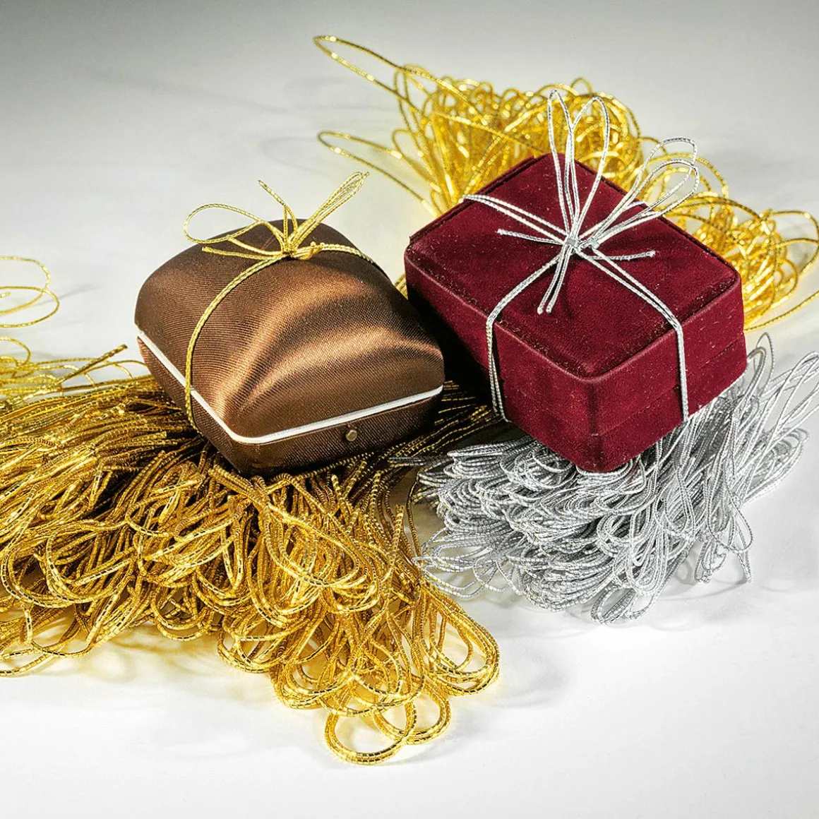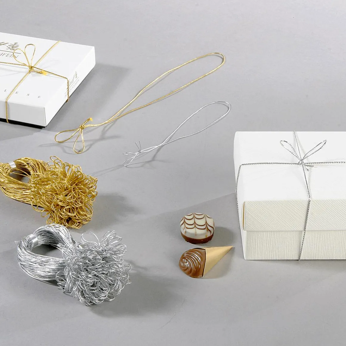 elastisches Ziergummiband mit Flügelschleife, 1 mm breit, ideal als Fertigschleife für kleine Schachteln oder Verpackungen im Schmuckbereich und der Kosmetikbranche, Preis per Pack à 100 Stück