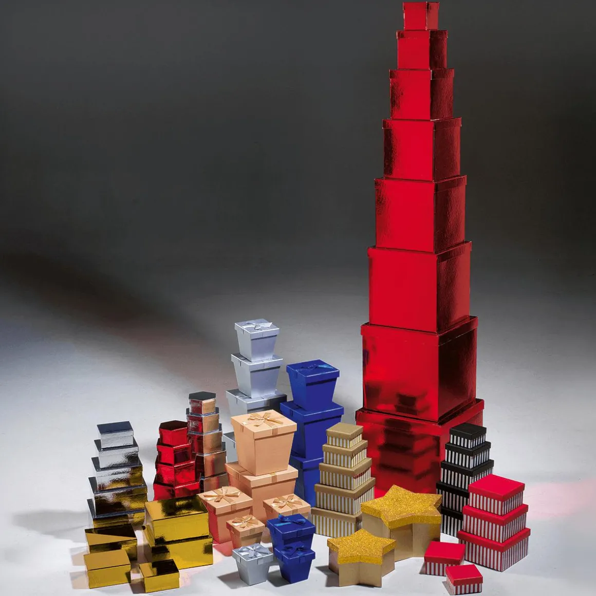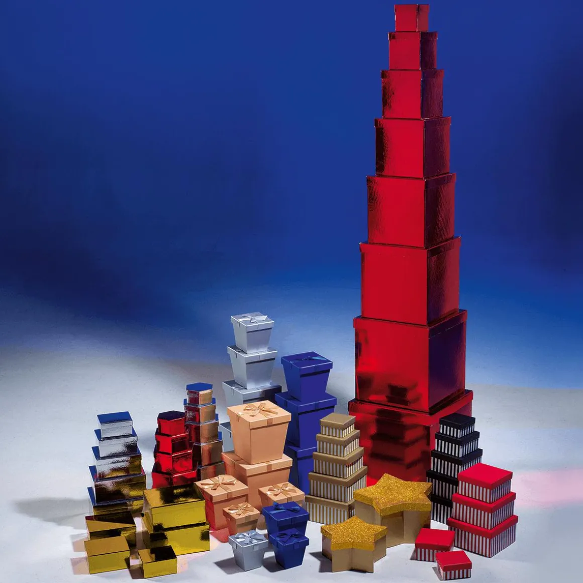 Die rechteckigen Geschenkboxen sind zeitlos schön, wiederverwendbar und unterschiedlich Groß, zwischen 16 x 12 x 6 und 19 x 22 x 10 (B x L x H). Die Geschenk-Kartons mit Deckel passen ideal zum Thema Weihnachten, Jubiläum, Hochzeit, Muttertag, Ostern, Kindertag oder Geburtstag. Die Aufbewahrungs-Boxen bestehen aus einem stabilen, beschichteten Karton und haben einen praktischen Deckel. Ideal für Geschenke, die sich nur schwer einpacken lassen, zerbrechlich sind oder aufgrund ihrer Exklusivität eine besondere Geschenkverpackung benötigen. Die Kartons sind ineinander stapelbar und somit sehr platzsparend.