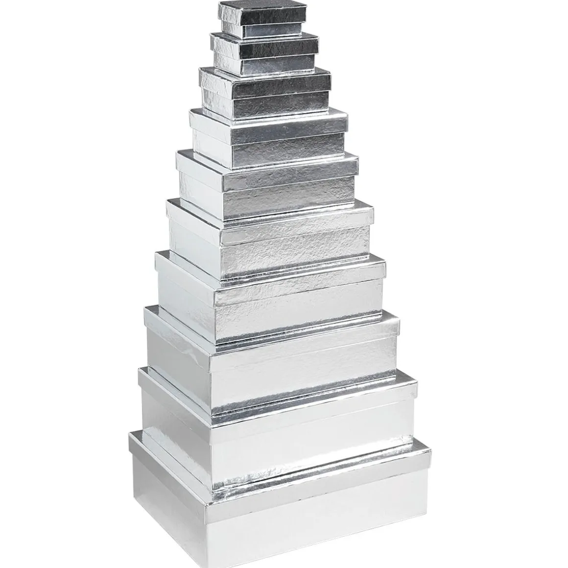 Geschenkkartonagen Geschenkboxen Silber, 10 Stück 6,5 X 3,5 X 8,5 Bis 22 X 9,5 X 31 Cm (B X H X L)