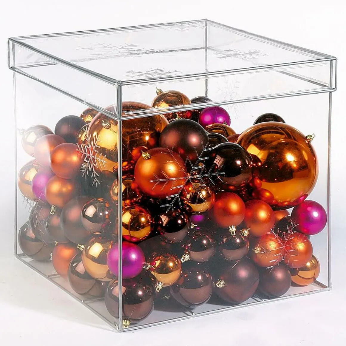 Das edle Kupfer unserer Weihnachtskugeln lässt sich hervorragend mit Nuancen wie Hellkupfer und Bronze ergänzen. Als farbliche Schnittstelle zwischen Gold und Rot können die glänzenden Christbaumkugeln mit ebendiesen Nuancen kombiniert werden. Maximale Kontraste erzielen Sie in Verbindung mit schwarzen oder nougatbraunen Weihnachtskugeln, welche die Leuchtkraft der Farben hervorheben. Ähnliche Kontraste, diesmal aufgrund der Komplementärwirkung, erzielen Sie in Verbindung mit blauen Christbaumkugeln.