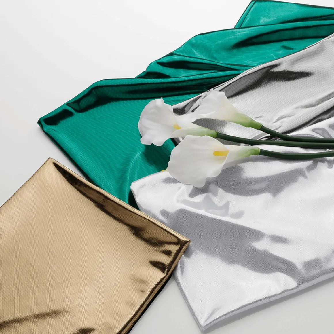 100% Polyester, bi-elastisches, weich fallendes Folienjersey mit schönem Lichteffekt, metallisierte Oberfläche, dieser Avenuestoff eignet sich hervorragend für effektvolle Dekorationen, alle Glanzstoffe in Ihrer individuellen Wunschlänge erhältlich, individuelle Zuschnitte mit unterschiedlichen Maßen sind möglich, Preis per m