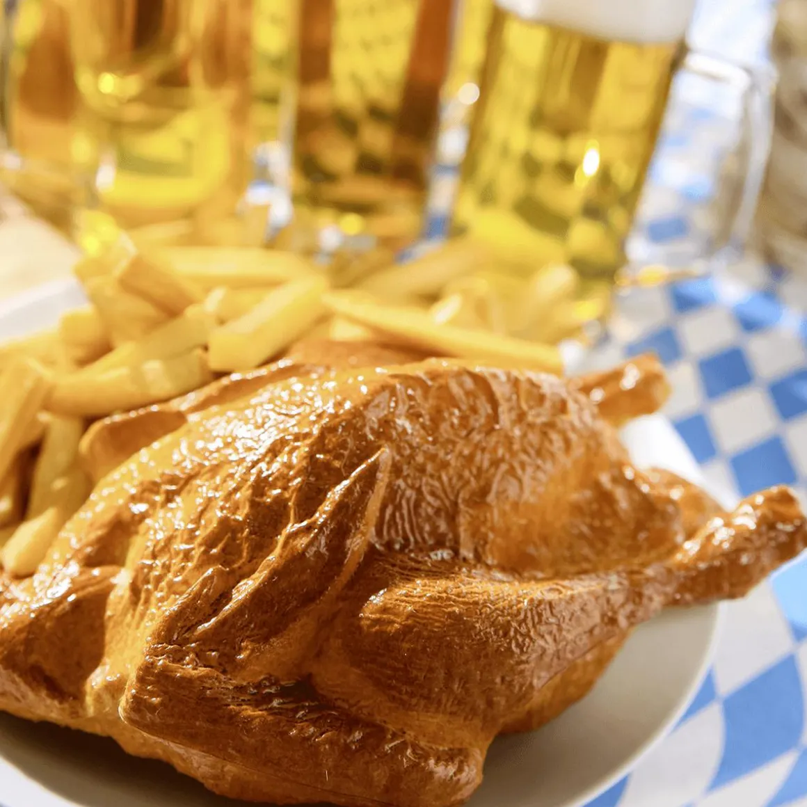 Hochwertig und mit sehr viel Liebe zum Detail verarbeitetes Kunststoff Grillhähnchen.