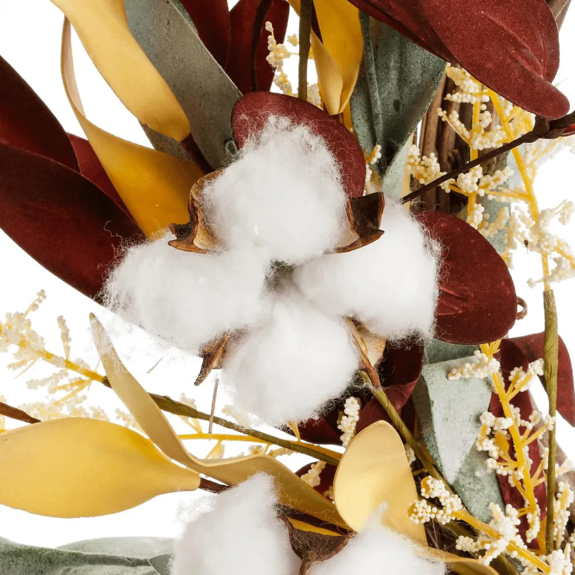 Herbstlicher Deko-Türkranz „Baumwoll-Blüten-Grasmix“ 26 Cm Ø
