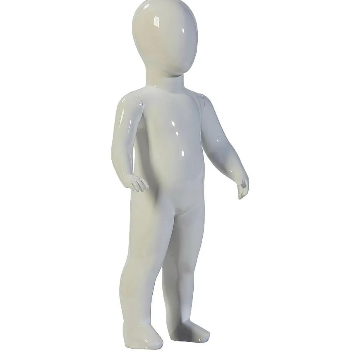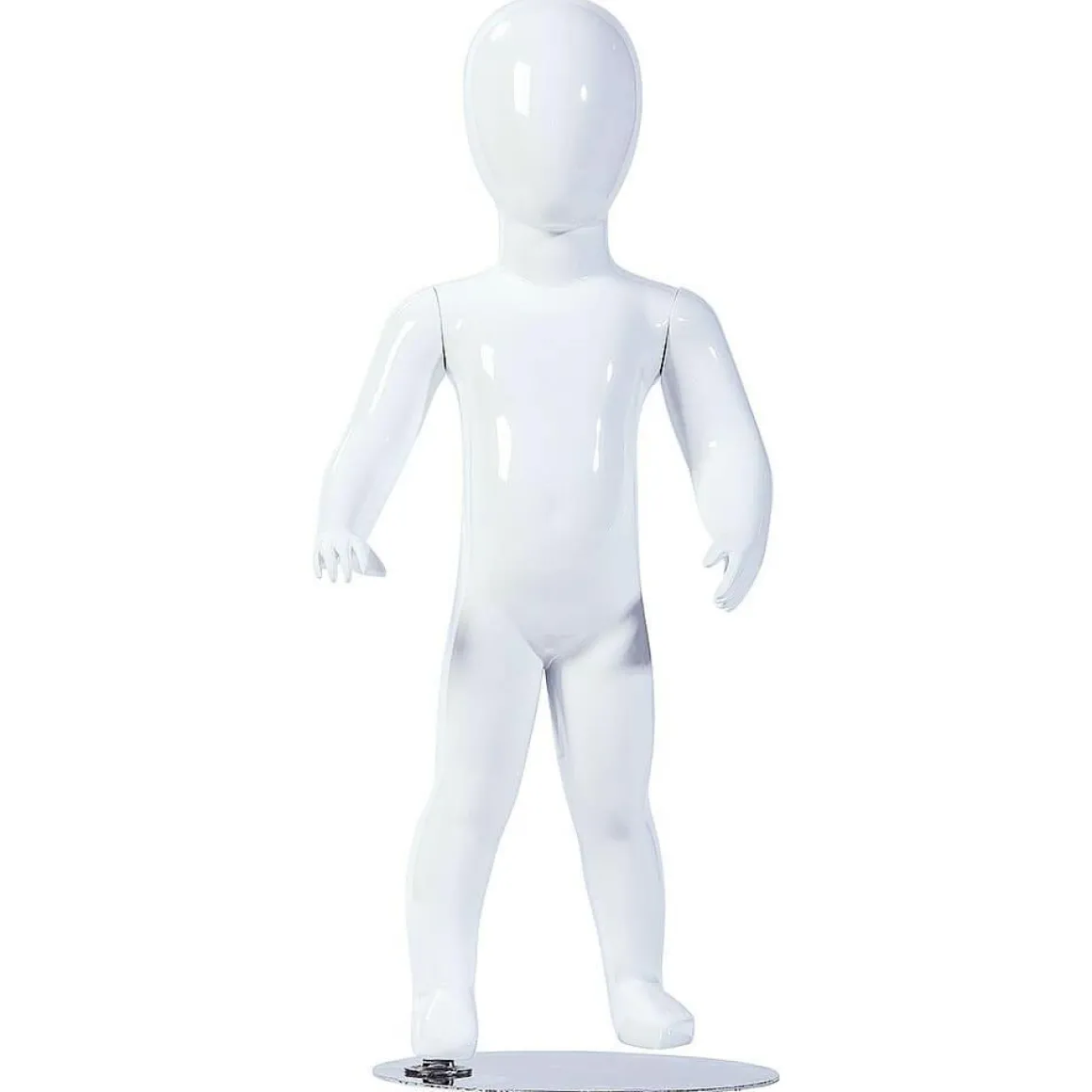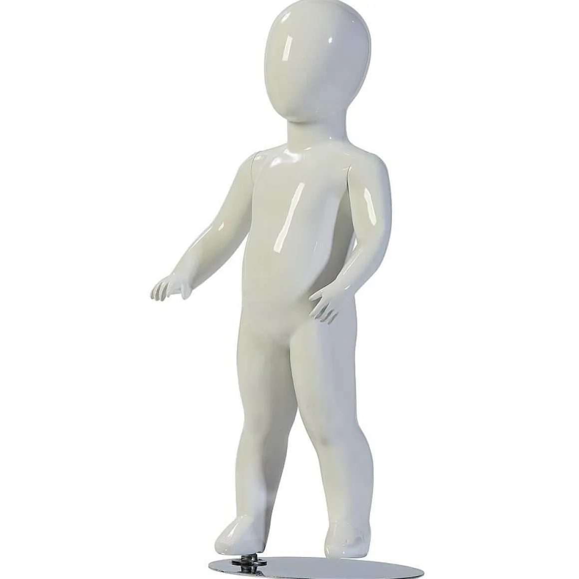 Highglossy Kinder-Schaufensterpuppe in charmanter Pose. Vollplastischer Körper mit Egghead aus reinweißem Fiberglas. Inkl. Fersenpin und verchromter Metallplatte. Preis per Stück.