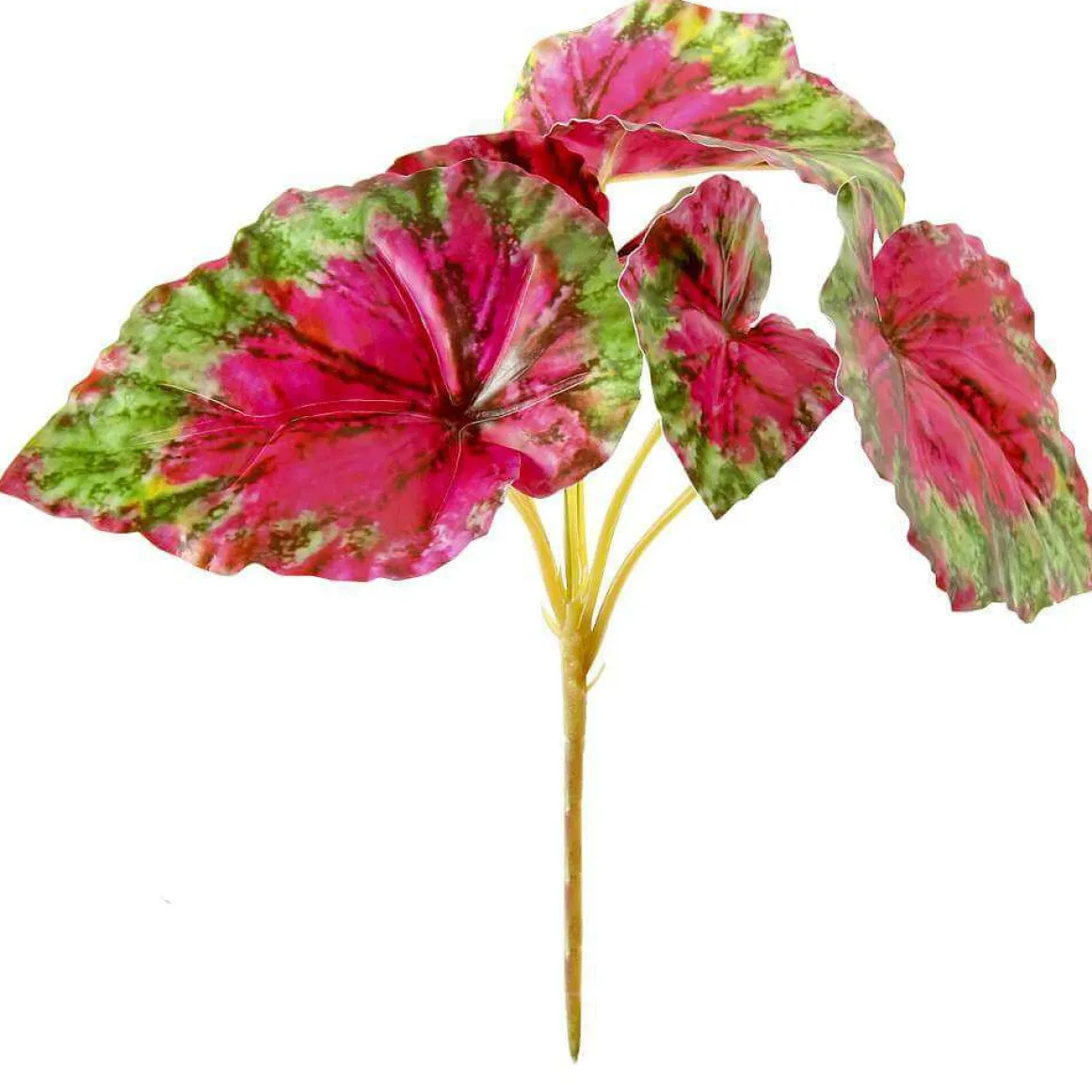 Künstliche Blattbegonie auch Schiefblatt oder Königsbegonie mit sehr realistischem Erscheinungsbild. Die Blätter sind ihrem natürlichen Vorbild zum verwechseln ähnlich und bringen mit ihren frischen Farben exotischen Flair in Gestecke, als Begleitgrün oder als Ergänzung in Pflanzwänden. Die Kunstpflanze besteht aus einem Steckstab mit sechs unterschiedlich großen Kunstblättern und ist komplett aus beständigem Kunststoffmaterial hergestellt. Preis per 3tlg. Satz.