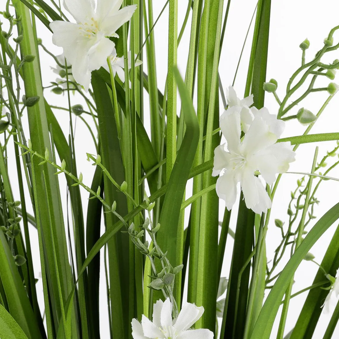 Künstlicher Dekogras Mit Weißen Blüten 48 Cm