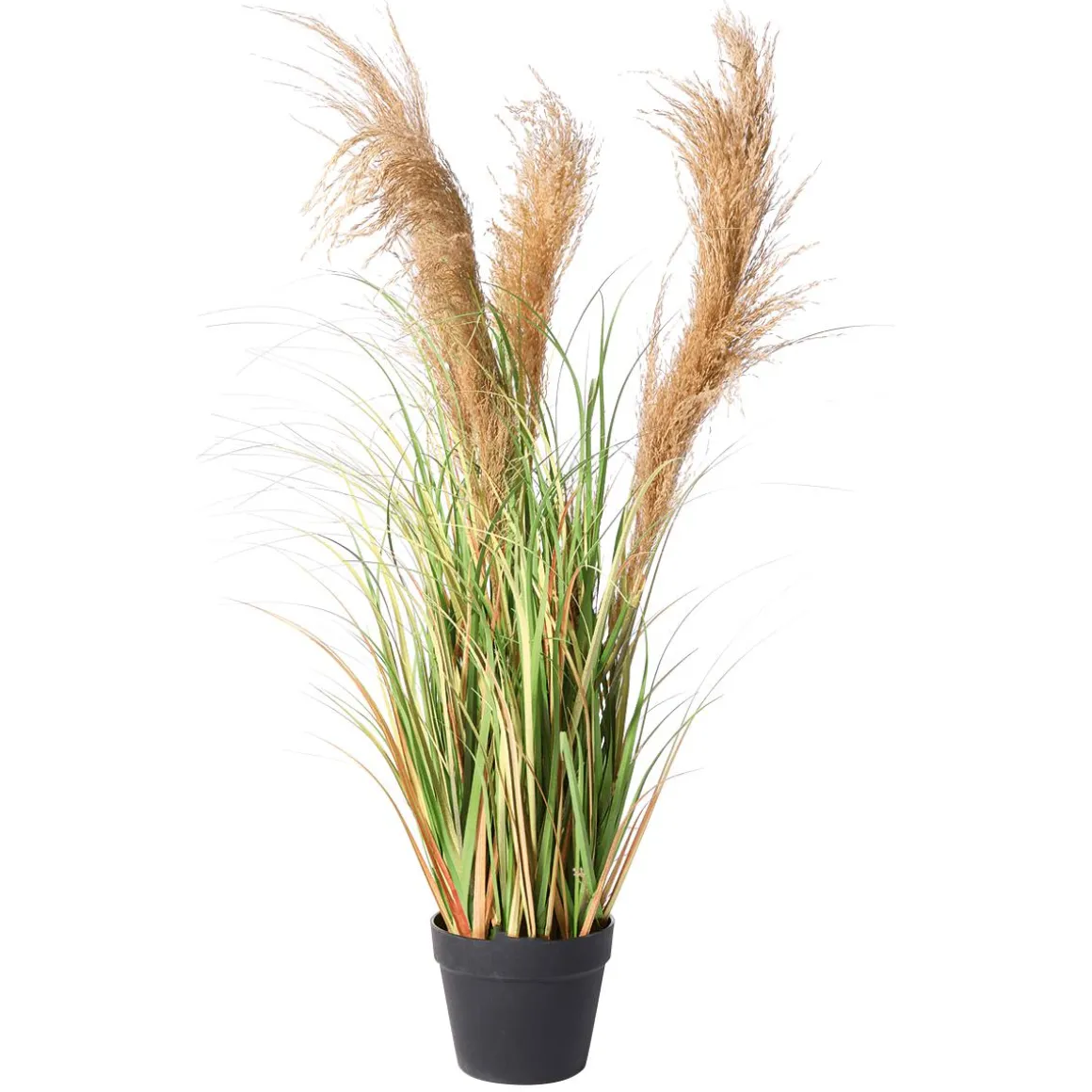 originalgetreu nachempfundene Kunstpflanze mit filigranen Grashalmen in unterschiedlicher Farbgebung und echten Pampasgras-Wedeln, Kunststoff-Blätter aus hochwertigem PE-Material, eingetopft in einem schwarzen Topf (ca. 13 cm Ø) aus Kunststoff, Preis per Stück