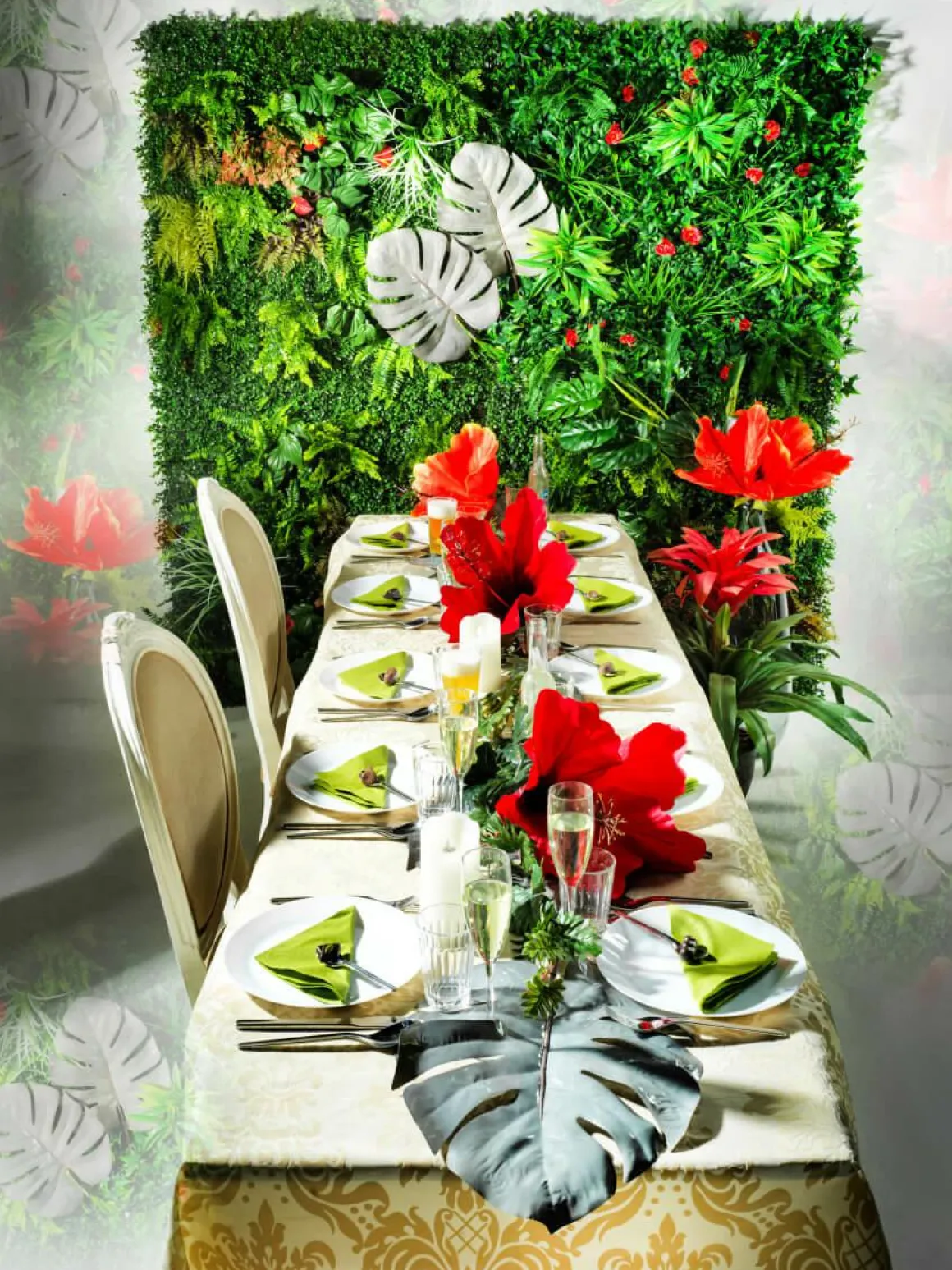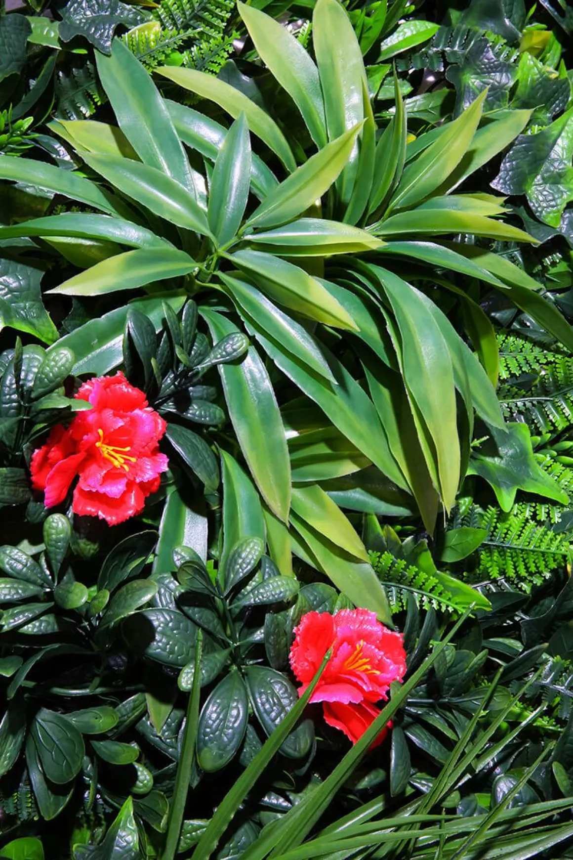 Dank der riesigen Größe dieser Pflanzenpaneele lassen sich stilvolle Wandbegrünungen schnell und einfach gestalten. Geringer Pflegeaufwand und die Begrünung von Standorten mit schlechten Lichtverhältnissen sind die Vorteile von Kunstpflanzen. Täuschend echt aussehende Kunstpflanzen aus hochwertigem Kunststoff befestigt auf Gitternetz aus Kunststoff. Unser Tipp: für langlebige Farbentreue empfehlen wir eine Behandlung mit UV Schutz Spray aus unserem Sortiment.