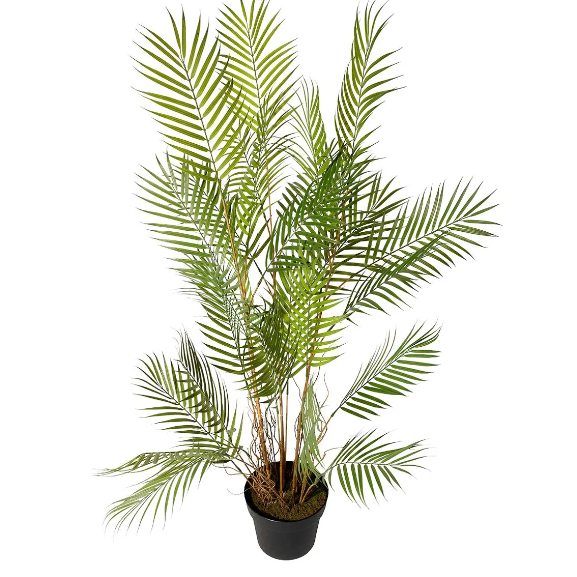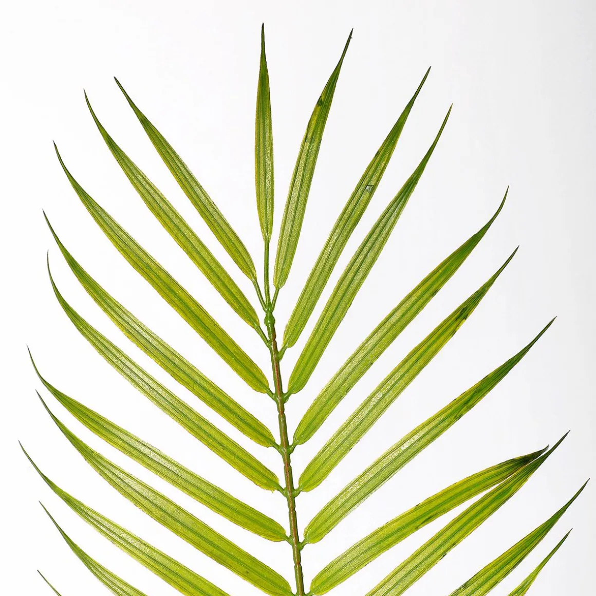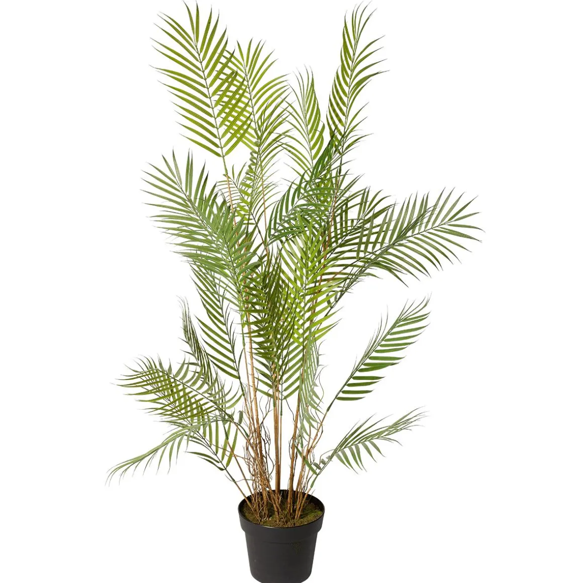 Formschöne und detaillierte Dekopalme mit Palmwedeln aus hochwertigem PE Material. Die Kunstpalme Areca ist mit mehreren, unterschiedlich langen Blättern und braunem Blattgrund realistisch bestückt. Mit ihrer niedrigen Wuchshöhe und einem Kronen-Durchmesser von ca. 50 cm Ø ist die Kunstpalme ideal für kleinere Räume. Geringer Pflegeaufwand und die Begrünung von Standorten mit schlechten Lichtverhältnissen sind weitere Vorteile für den Einsatz von Kunstpflanzen. Eingetopft in einem Topf aus Kunststoff ist die Palme sofort einsatzbereit und behält für viele Jahre Form und Farbe. Preis per Stück.