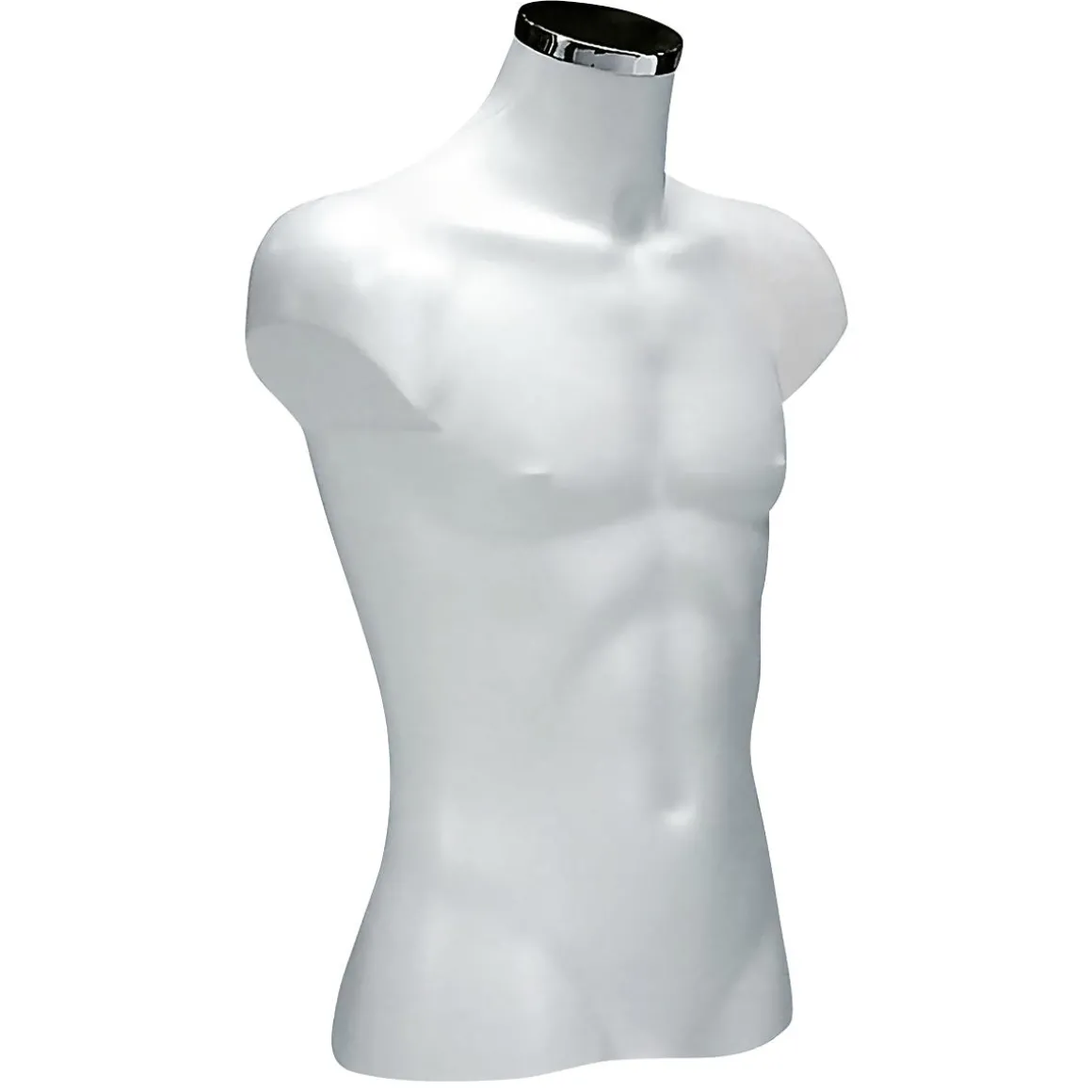 Eleganter Herrentorso mit schön definiertem Brustbereich, perfekt für die Präsentation von Oberbekleidung. Die Vorteile eines Torso liegen in der einfachen Handhabung – sie können problemlos getragen werden, da sie im Vergleich zu einer kompletten Schaufensterpuppe wesentlich leichter sind. Aufgrund der geringeren Gesamthöhe kann der Torso innerhalb des Geschäftes auf Augenhöhe als Tischpräsenter aufgebaut werden. Der Torso besteht aus formstabilem Kunststoff mit glatter Oberfläche und wird ohne Standfuß geliefert, mit Schulteransatz und Chrom-Abschlusskappe. Ausgestattet mit Nacken- und Beinaufnahme, lässt sich die Herrenbüste jederzeit um eine höhenregulierbare Basis aus unserem Sortiment erweitern. Ein Muss für jede Ladeneinrichtung im Textilhandel. Preis per Stück.