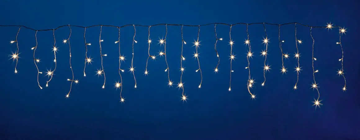 Eisregen-Lichterkette mit unterschiedlich langen Lichtersträngen und gleichmäßig verteilten LEDs mit warmweißem Licht schaffen Sie ein stimmungsvolles Lichtermeer zur Weihnachtszeit. An Dachgiebeln, Geländern oder Fassaden erhellen sie die dunkle Winternacht und bewirken einen schönen Lichterglanz. Im Innen- und Außenbereich anwendbar. LED zeichnen sich durch eine geringe Wärmeentwicklung, einen äußerst niedrigen Stromverbrauch und eine hohe Lebensdauer aus. Netzteil Schutzklasse IP44, GS. Preis per Stück.