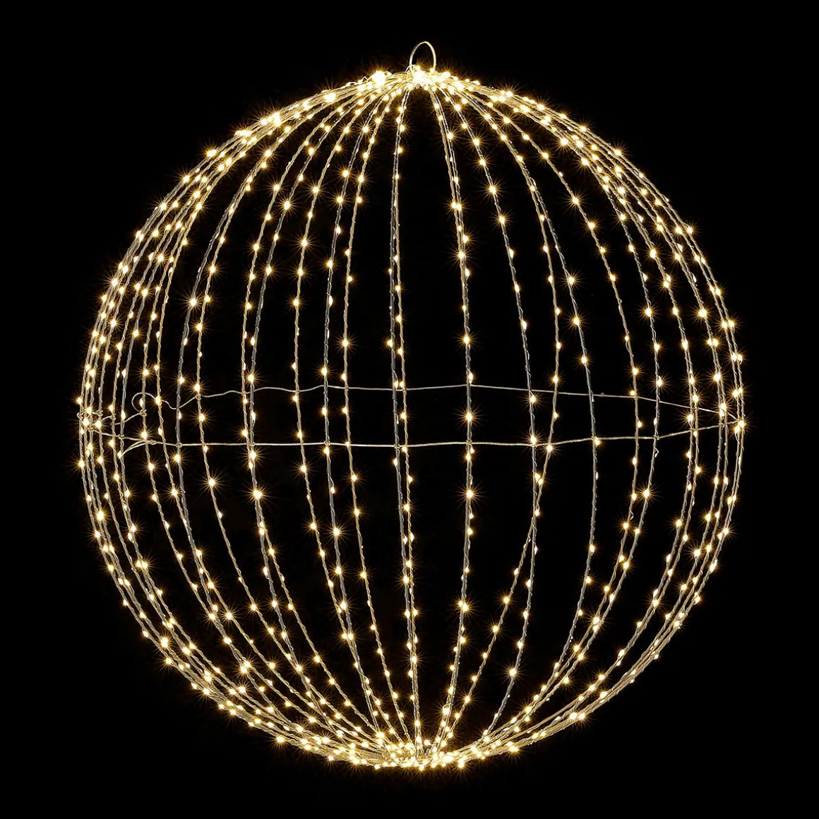 Moderner Klassiker für stimmungsvolle Licht-Akzente in der Weihnachtszeit! Die Kombination aus Draht und Licht lässt diese Leuchtkugel in jeder Umgebung einfach außergewöhnlich wirken. Die Kugel ist flach zusammenfaltbar, silber lackiert und besteht aus 3 mm Drahtstreben mit eingearbeiteter Micro LED-Drahtlichterkette. Klares PVC-Kabel, Netzteil mit Konturenstecker, GS. Für den Außenbereich geeignet. Bitte beachten Sie: für die Anwendung in der Schweiz ist ein Steckdosen-Adapter notwendig. Diesen finden Sie in unserem Sortiment unter der Artikelnummer 432.160.00. Preis per Stück.