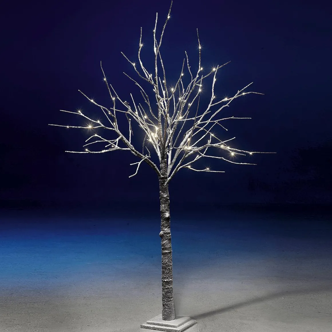 Dieser Winter-Lichterbaum sorgt für eine sanfte stimmungsvolle Innenbeleuchtung und ist genau richtig in der dunklen Jahreszeit. Die warm-weißen LEDs sind in die Äste eingearbeitet, somit gibt es kein Kabelgewirr zwischen den Zweigen. Der Winterbaum eignet sich sehr gut zum Schmücken mit Weihnachtskugeln und weihnachtlichen Accessoires. So können Sie den Baum jedes Jahr neu gestalten. Der Lichterbaum ist dank LED Technik energiesparend und von langer Lebensdauer. Beschneiter Deko-Baum mit schöner dunklen Rindenoptik und standfestem Stufensockel. Aus Kunststoff.