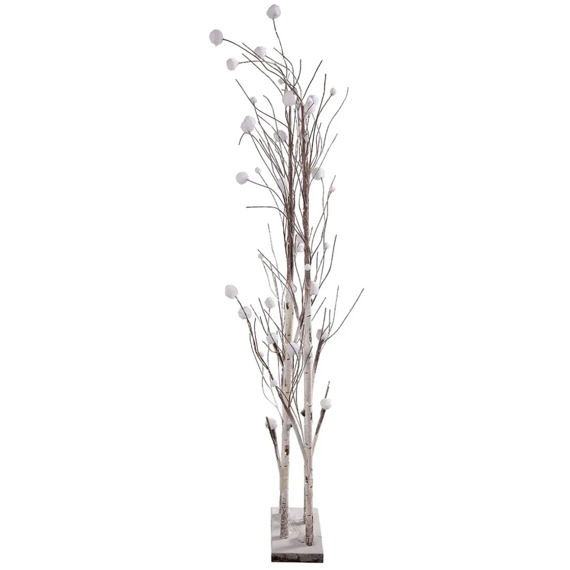 Zauberhafte Lichtakzente für Ihr Schaufenster! Kunstzweige in Birkenoptik, feiner Silberdraht und weiche Schneekugeln – so verleihen diese beleuchteten Zweige auf praktischer Standplatte (25 x 13 cm) jedem Raum Gemütlichkeit. Stromsparende Micro LEDs ohne Wärmeentwicklung und die geringe Stromspannung ermöglichen auch eine längere Beleuchtungszeit. Steckernetzteil mit Konturenstecker, IP44 Schutzart für zeitweise Verwendung im geschützten Außenbereich, GS.