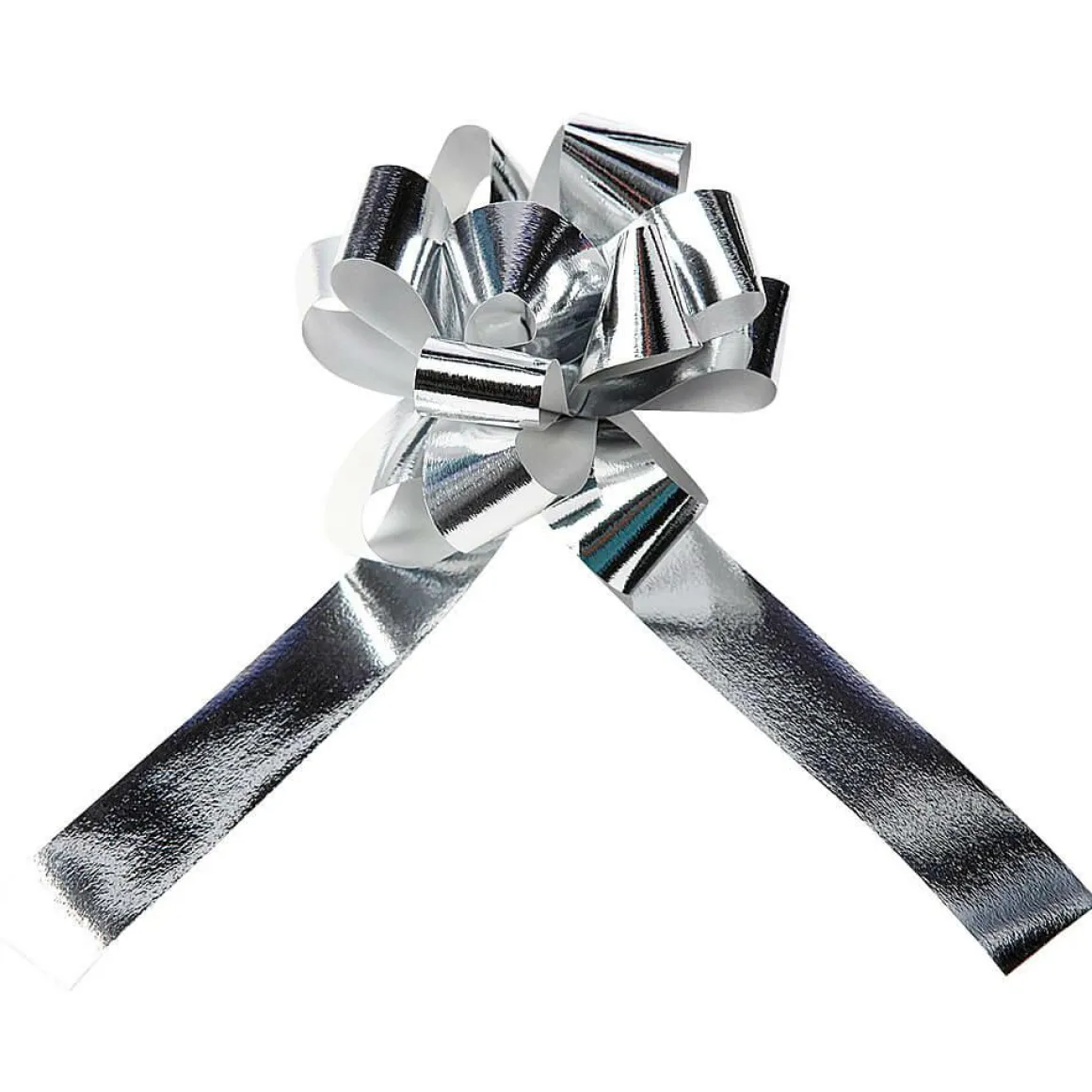 Metallic-Ziehschleifen, 10 Cm Ø, Silber, 50 Stück