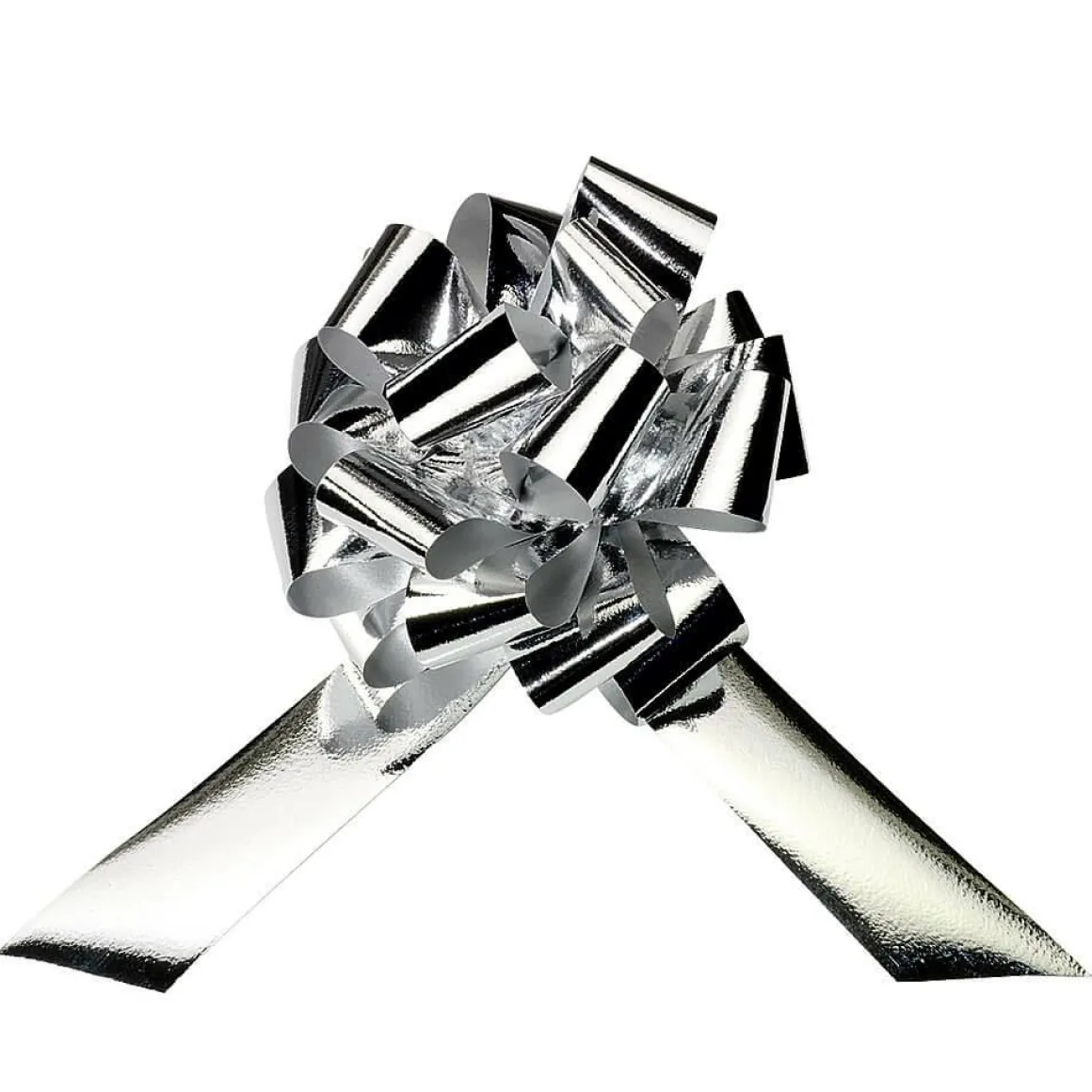 Metallic-Ziehschleifen, 14 Cm Ø, Silber, 50 Stück