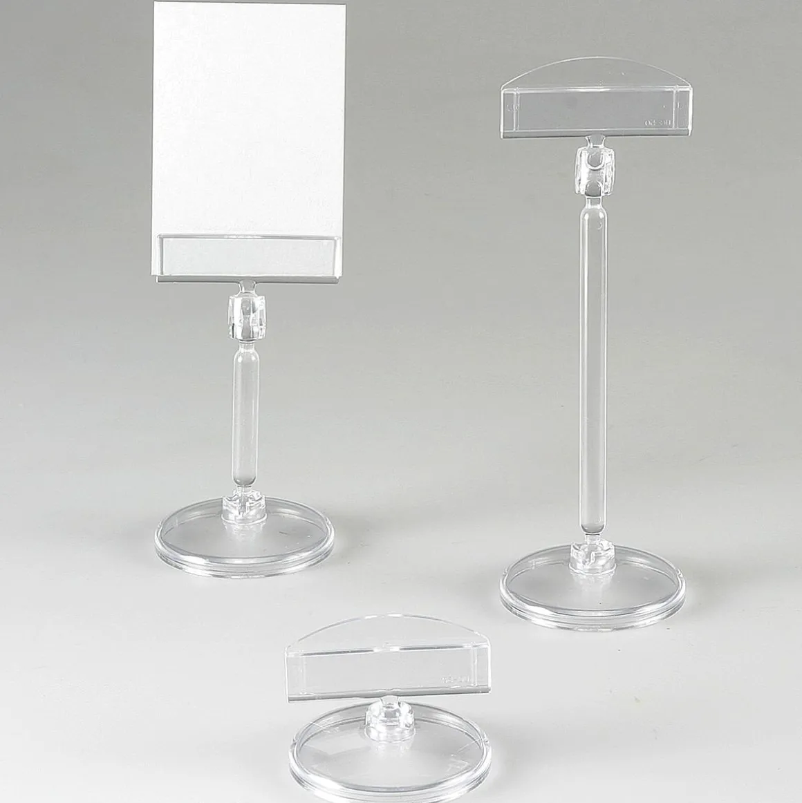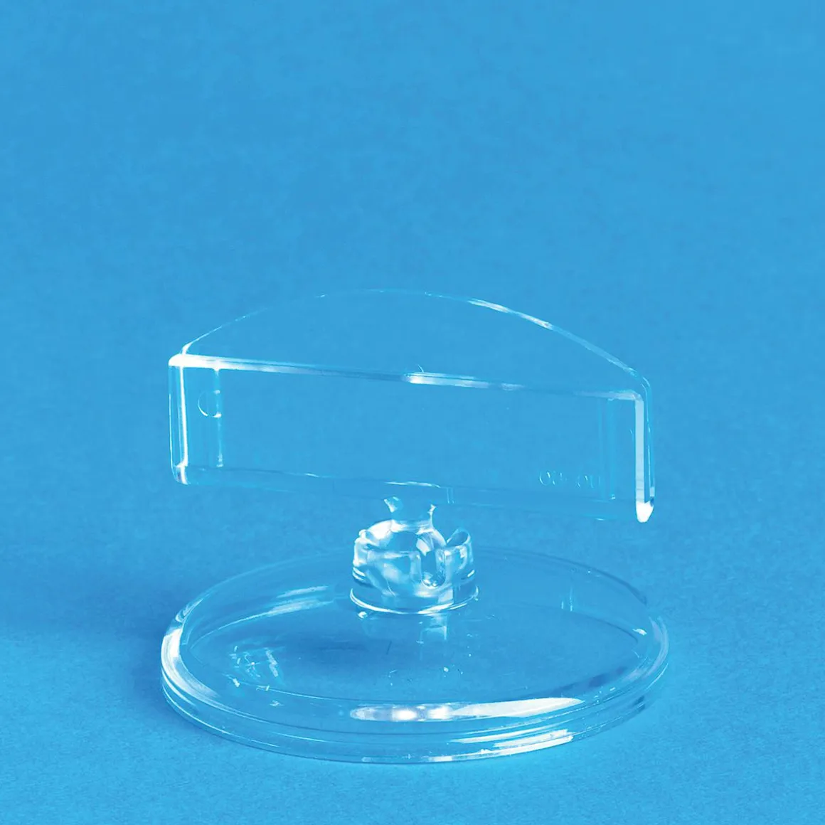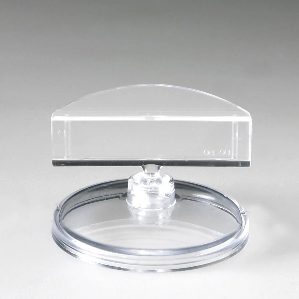 Schildhalter für eine schnelle und flexible Preisauszeichnung, mit beweglichem Kugelgelenk für passgenaue Ausrichtung, Tellerfuß 5 cm Ø, hochwertige Qualität aus glasklarem Polycarbonat, Made in Germany, Preis per Stück