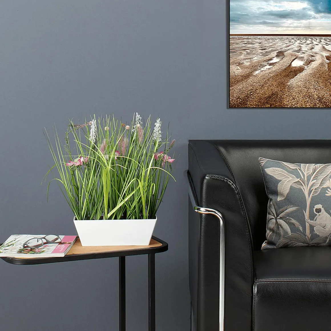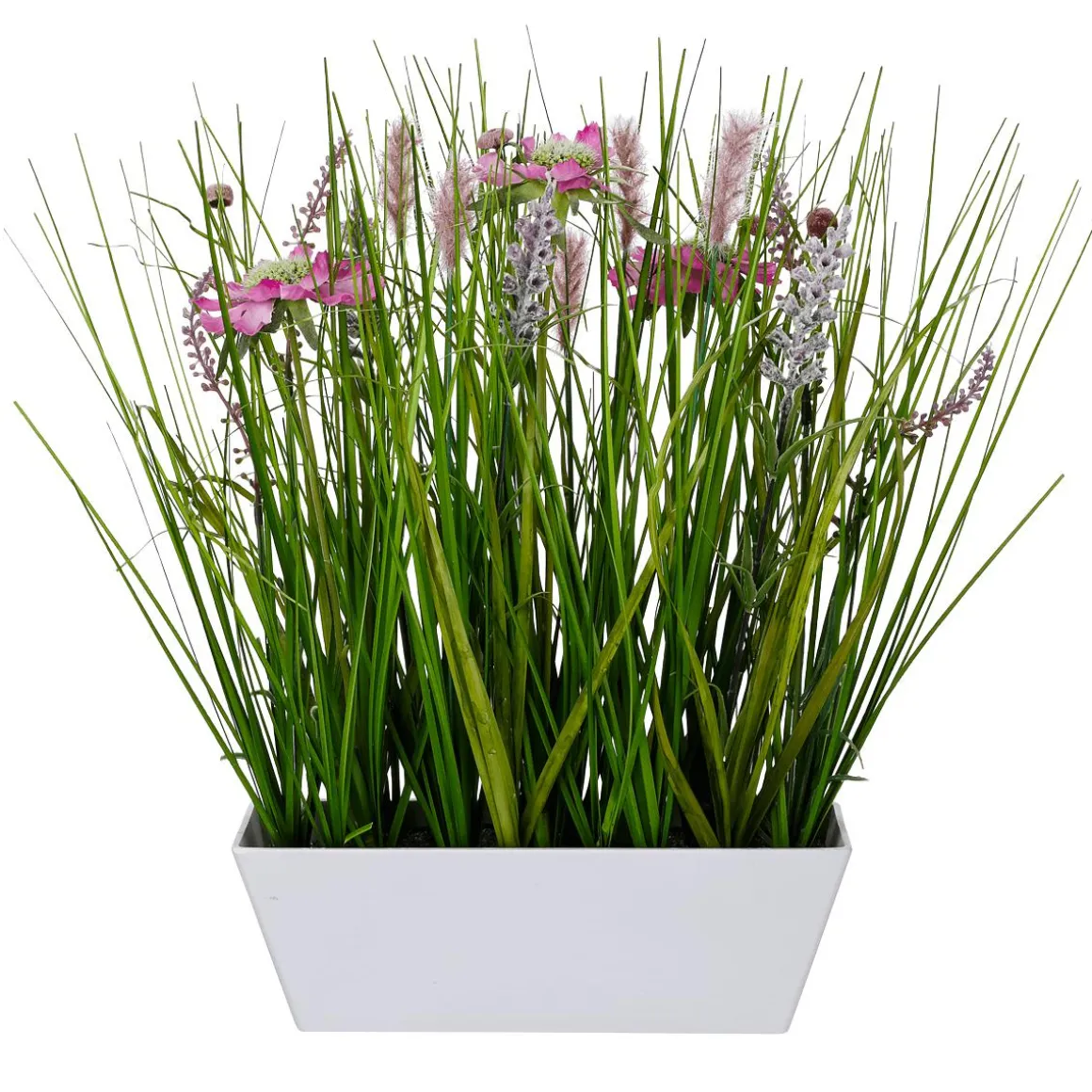 Sehr detailgetreu bearbeitete Kunstgräser mit künstlichen Wiesenblumen, pink & weiß, im Kasten 24 x 38 x 6,5 cm (B x H x T). Die Topf-Kunstblumen sind langlebig und vom original kaum zu unterscheiden. Preis per Stück