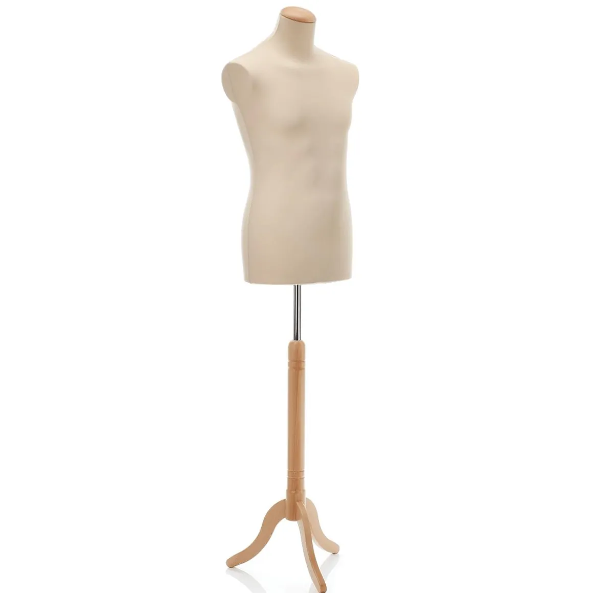 Schneiderpuppe Männlich Ecru Auf Hell Eiche-Dreibeinständer 148 – 178 Cm Hoch