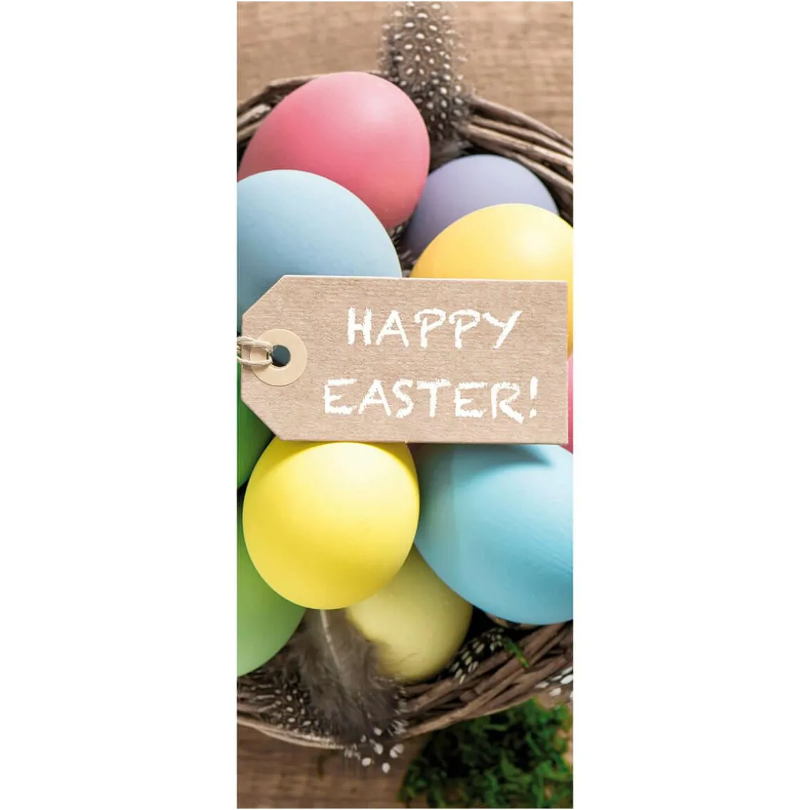 Frisch, fröhlich, frech. Dieses Textilbanner macht klare Ansagen und versetzt seine Betrachter augenblicklich in Osterstimmung. Im Fokus steht ein Nest aus bunten Ostereiern, mittig verkündet ein „Happy Easter“ Anhänger beste Wünsche. Schön und simpel auf den Punkt gebracht, erschließt sich die Botschaft augenblicklich. Wünschen Sie Ihren Kunden, Kollegen oder Lieben schöne Ostern mit unserem sympathischen Deko-Banner.