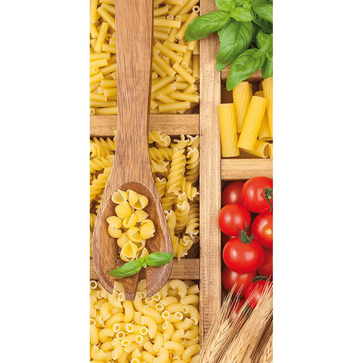 Buon Appetito! Stoffbanner mit verschiedenen italienischen Nudelsorten, verspielt präsentiert