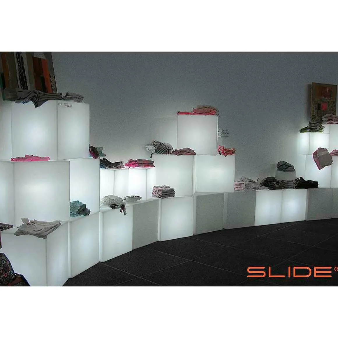 Ob als Sitzmöbel, als Beistelltisch oder zu Lichtwänden gestapelt – die Einsatzmöglichkeiten dieses zeitlosen Leuchtwürfels sind vielfältig und lassen sich immer wieder neu kombinieren. Als Indoor-Wohnaccessoire sorgt das Slide Leuchtelement Made in Italy für eine schöne Lounge-Atmosphäre und stylische Beleuchtung. Bunte Energiesparlampen setzen zusätzliche Akzente. Aus stabilem und leicht zu reinigendem Polyethylen. Lieferung erfolgt exkl. Leuchtmittel. Preis per Stück.