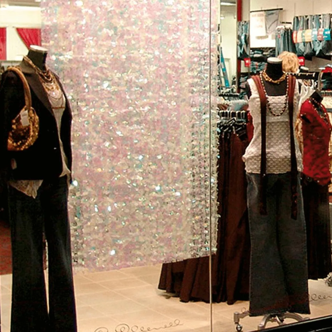 Glanz und Glitzer – mit dieser außergewöhnlichen „Blüten“ Folie erzielen Sie beeindruckende Dekorationen mit tollen irisierenden Effekten. Damit findet jede anspruchsvolle Gestaltung genau das, worauf es ankommt – Aufmerksamkeit! Die 35 my Vinylfolie besteht aus einseitig ausgestanzten Blüten und bietet einen tollen Blickfang in unzähligen Dekorationen, auf Präsentationsflächen, als Wand- oder Bodenverkleidung im Schaufenster, als frostige Winter-Tischdekoration, als Partydeko mit eisigem Effekt oder im Kostüm- und Karneval-Bereich. Die Dekofolie ist schwer entflammbar und ideal für Messe, Events und öffentliche Veranstaltungen. Bitte beachten Sie: aus technischen Gründen erhalten Sie ab einer Bestellmenge von 9 m Rollenware zu je 9,2 m per Rolle. Individuelle Zuschnitte mit unterschiedlichen Maßen sind möglich, Preis per m.