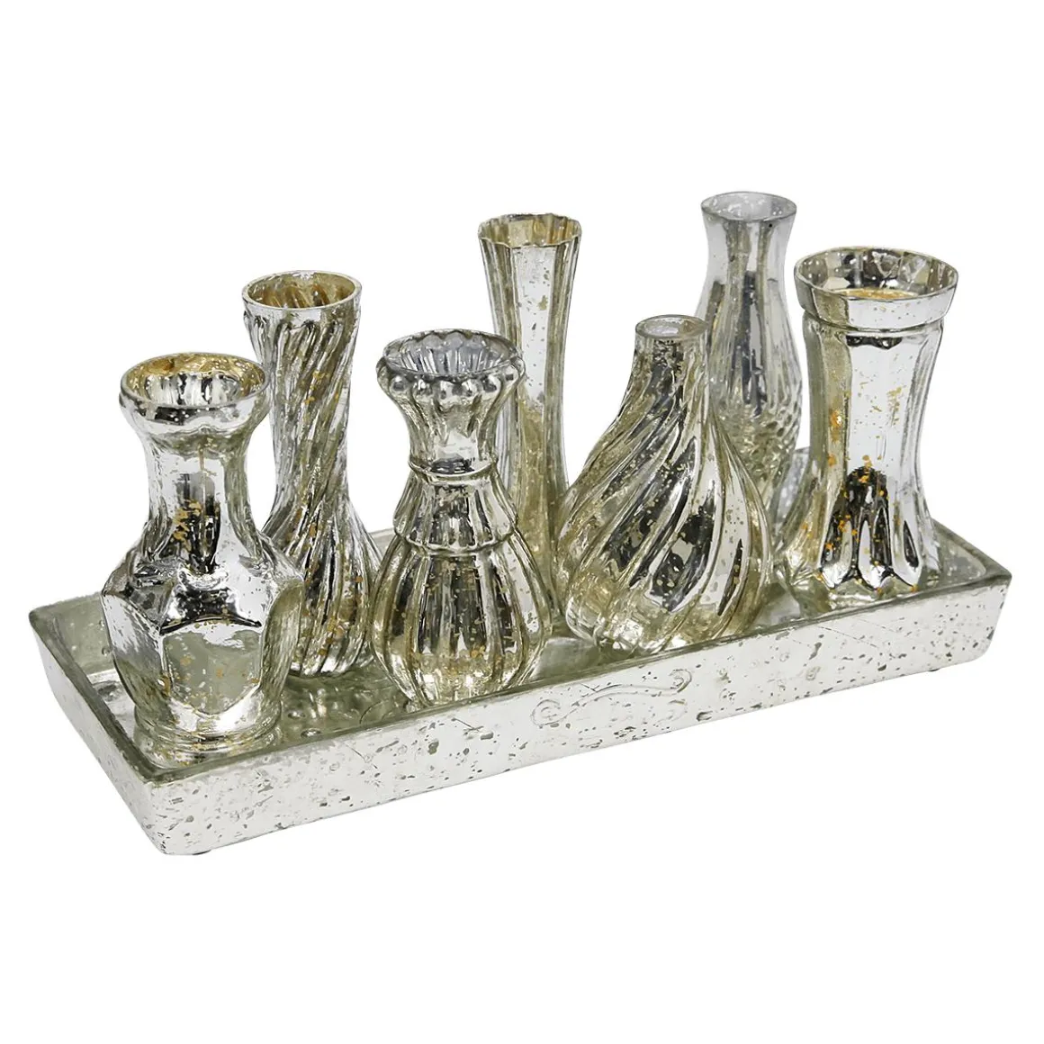 Tischdeko Silbervasen Mit Tablett, 8-teilig