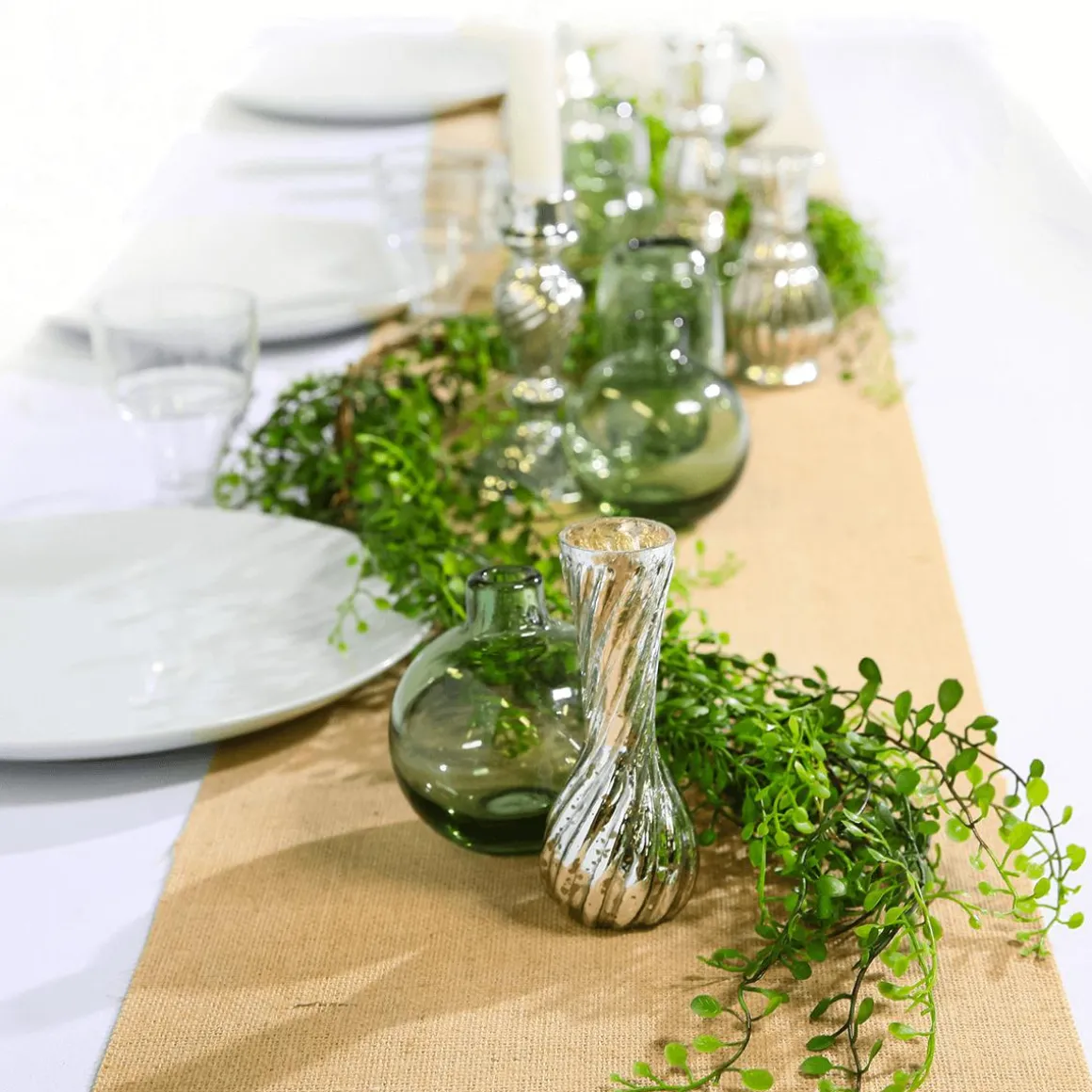 Bauernsilberglas-Tablett mit 7 bezaubernden kleinen Vasen im Antik-Look. Diese hübschen Vasen lassen sich individuell benutzen und können nach Belieben gemischt und zusammengestellt werden. Einzeln auf einem Sideboard, einem Beistelltisch oder einem Regal platziert, sind die Glasvasen auch ohne Blumen ein edles Deko-Accessoire zu jeder Jahreszeit. Besonders wirkungsvoll kommt dieses Ensemble gemeinsam arrangiert zur Geltung, das passende Tablett bietet dabei einen praktischen Untergrund. Dieses 8-teilige Dekoset in robuster Glas-Qualität ist perfekt für den French, Vintage oder shabby chic Stil. Achtung: die Bauernsilberschicht ist nicht wasserfest. Bitte nur für Trockenblumen oder zusammen mit Glaseinsätzen verwenden, da die in Handarbeit aufgetragene Silberschicht sich bei Kontakt mit Wasser ablösen könnte.