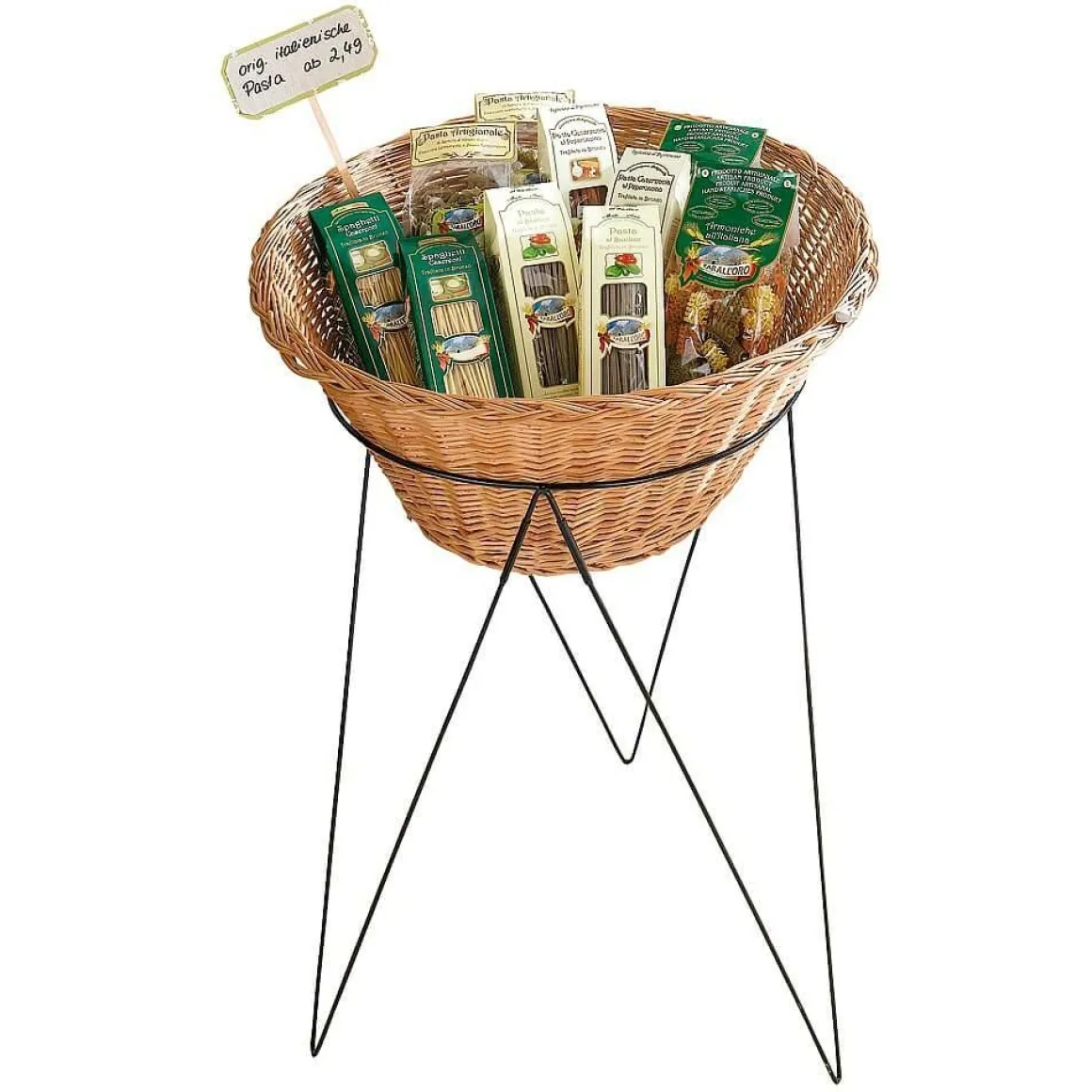 der Weidenkorb-Aufsteller ist ideal für den Einsatz im Reformhaus, Bioladen, Naturkost-Laden oder in Drogerien, schwarzes 8 mm Eisengestell, Gestellhöhe 72 cm, 2tlg. zum Zerlegen, Preis per Stück