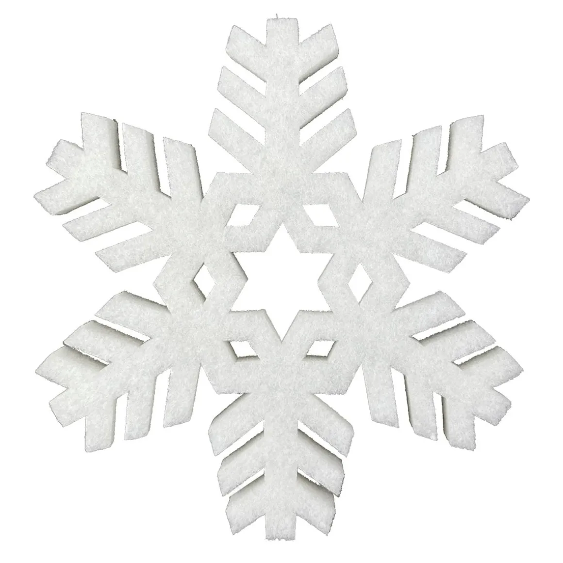 Deko Schneeflocke für die winterliche Dekoration von Schaufenstern, Weihnachtsmarktständen, Skihütten, Apres Ski Party oder Hüttenfeiern. Aus weißem, 20 mm starkem Wattevlies. Preis per Stück.