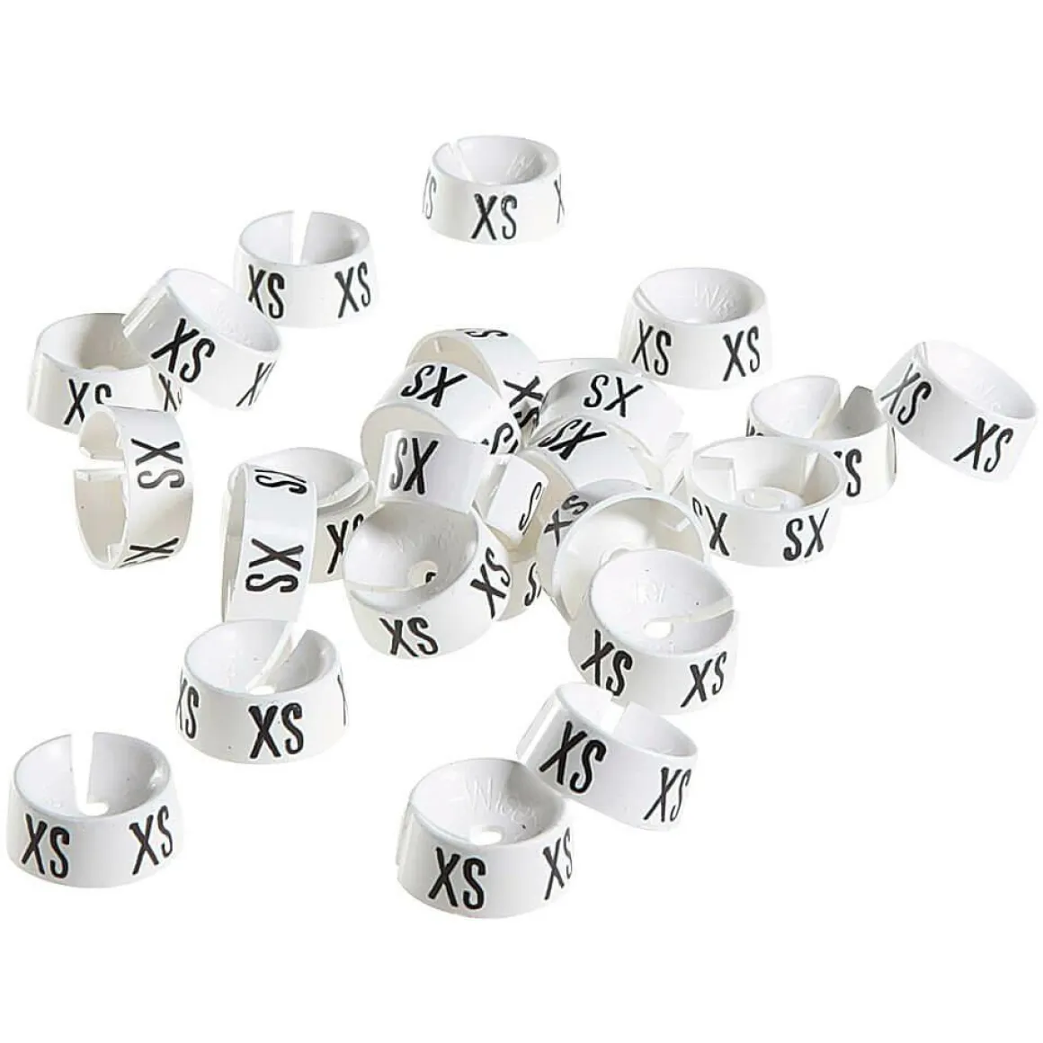 Subtile Sichtbarkeit: Größenringe für Kleiderbügel in Weiß mit schwarzem Aufdruck