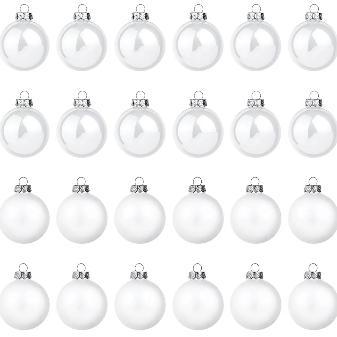 Die reine Freude: Weiß ist eine helle, sympathische Farbe, die sofort an winterliche Schneelandschaften erinnert. Ein Effekt, den unsere luftig-edlen Glaskugeln besonders schön zur Geltung bringen. Noch dazu sind weiße Weihnachtkugeln aus Glas wahre Deko-Alleskönner. Sie lassen sich mit zahlreichen Farben kombinieren, bringen Ruhe und Ausgleich in jedes Farbarrangement. Mit unseren weißen Glas-Weihnachtskugeln, die in matt und glänzend sortiert sind, können Sie märchenhafte Arrangements à la Schneewittchen gestalten! Hochwertig konzipiert mit festsitzenden, farblich abgestimmten Hütchen und ebenso hochwertig verpackt in einem wiederverwendbaren, umweltfreundlichen Karton. Damit Sie jedes Jahr aufs Neue mit den 6 oder 8 cm großen Christbaumkugeln ein magisches Winter-Wunderland zaubern können!
